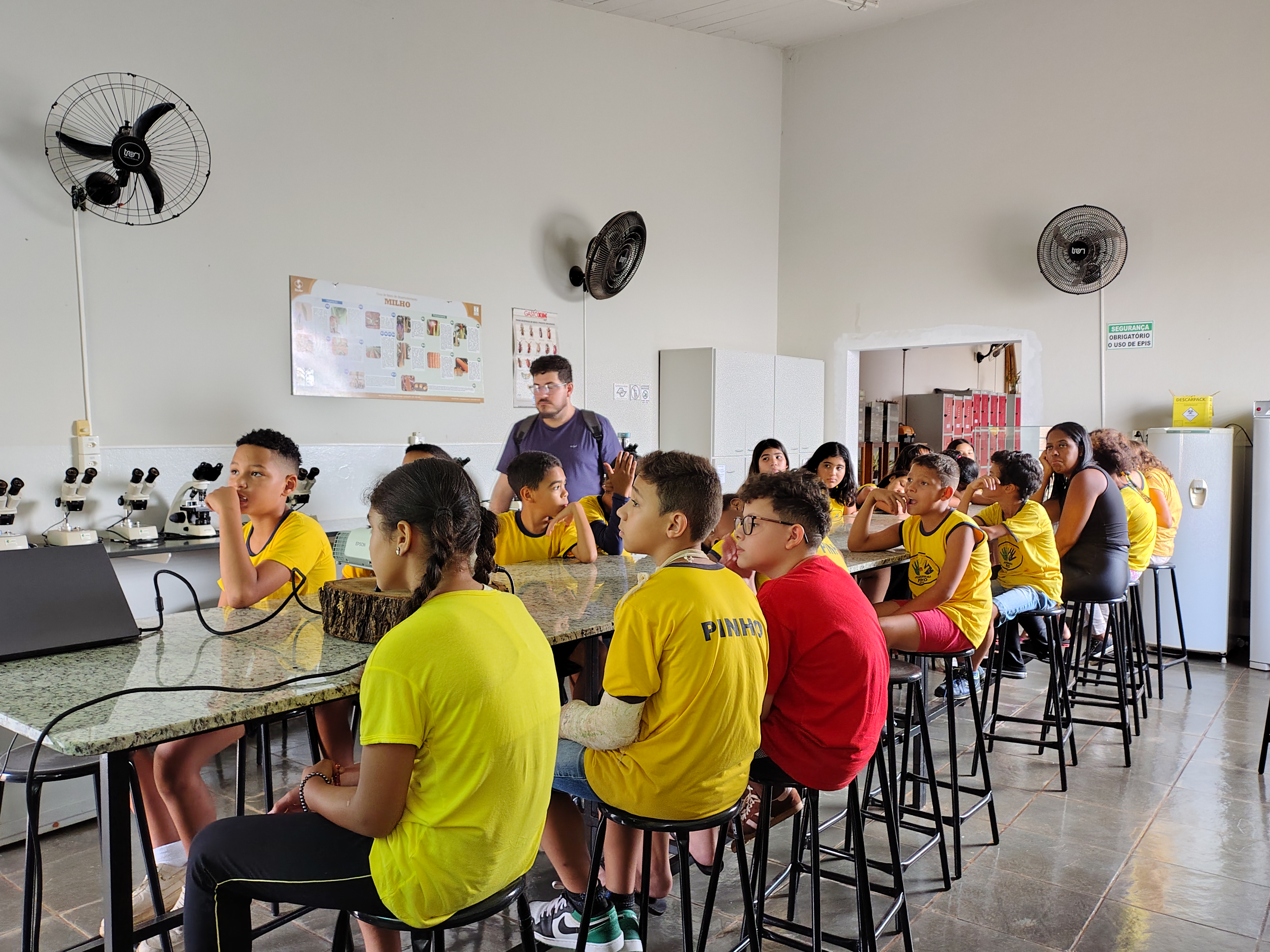 A visita teve como propósito aproximar os alunos do universo da pesquisa científica, oferecendo uma experiência prática que combina o conhecimento acadêmico com a educação básica. Acompanhados pelo professor Luan Fabio e pela monitora Camila, os alunos demonstraram grande curiosidade e entusiasmo ao interagir com o ambiente acadêmico.