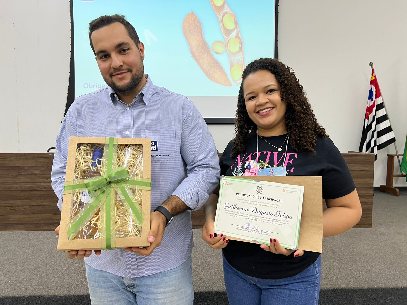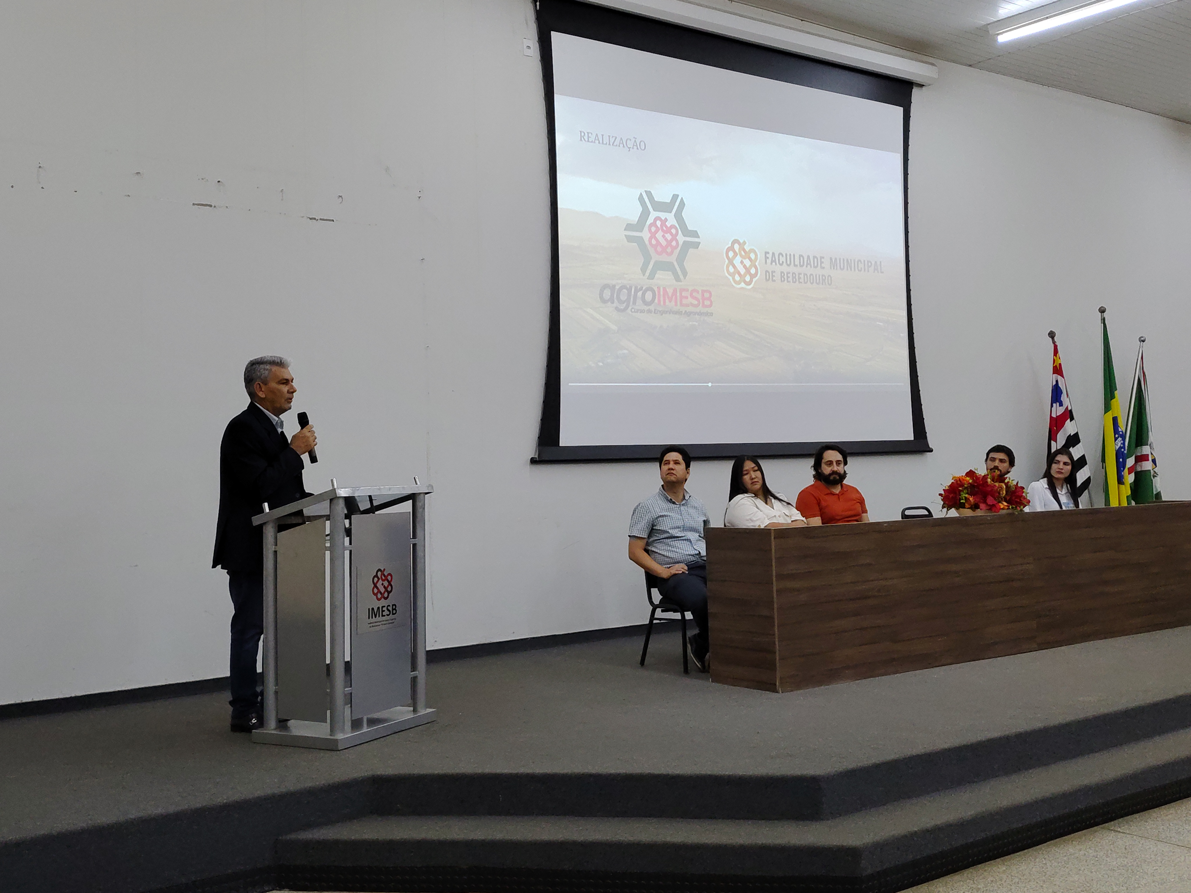 Estiveram presentes na abertura o coordenador do curso de Agronomia, Prof. Dr. João Emmanuel Ribeiro Guimarães, o vice-prefeito de Bebedouro, Paulo Aurélio Bianchini, além dos docentes Profª. Drª. Alessandra Karina Otuka, Prof. Dr. Danilo Ricardo Yamane, Prof. Dr. Gilmar da Silveira Sousa Junior e da aluna Maria Julia Rodrigues, que representou o corpo discente. Ao final, brindes foram sorteados entre os participantes, promovendo o incentivo à vivência universitária.