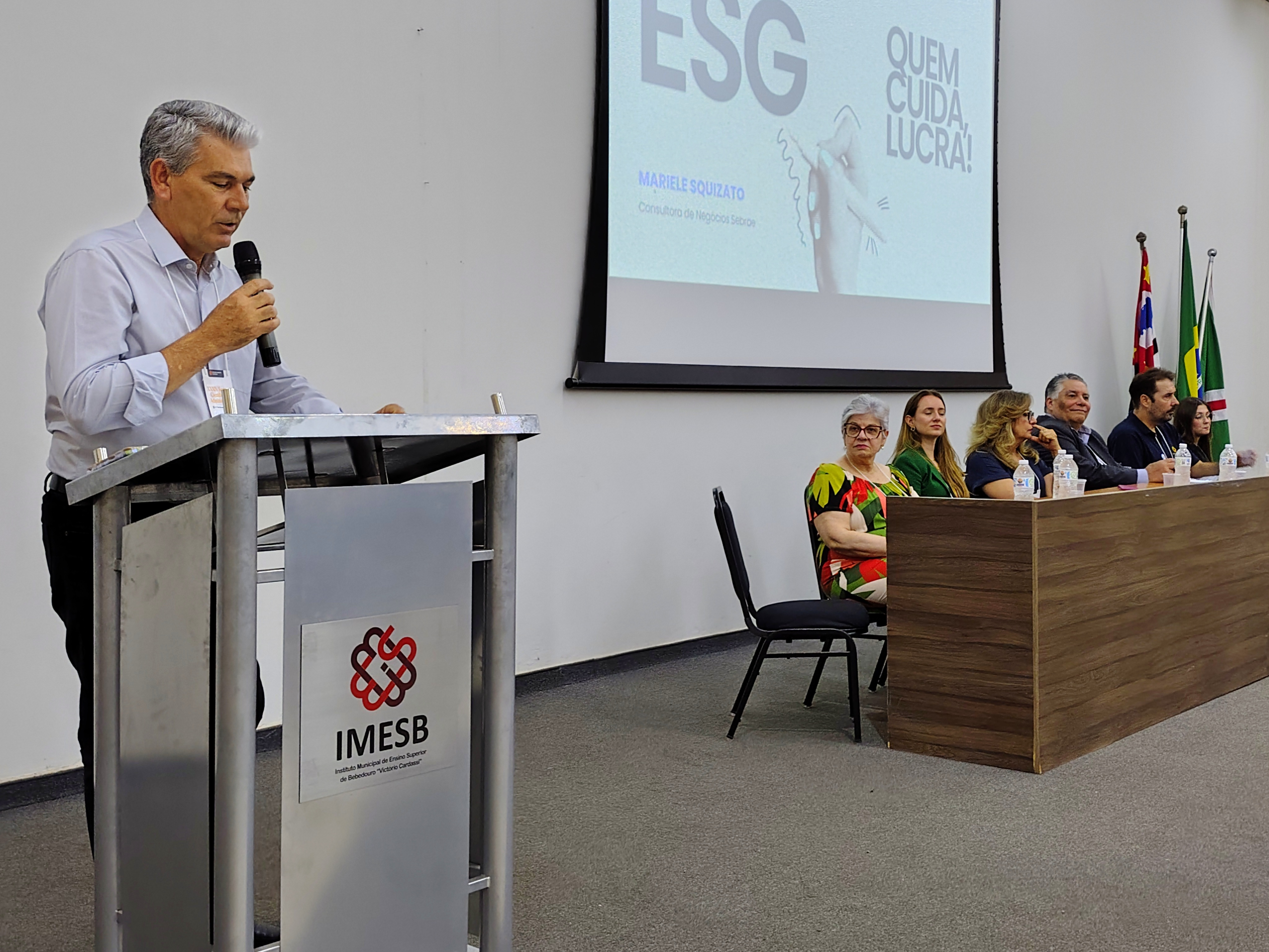 Durante sua exposição, Mariele Squizato apresentou um panorama histórico sobre o conceito de ESG (Ambiental, Social e Governança), destacando exemplos de falhas de governança, como o caso de Chernobyl, e boas práticas adotadas por empresas de referência, como a Natura, reconhecida pela sua responsabilidade socioambiental. A palestrante provocou reflexões sobre sustentabilidade, inovação e gestão ética, reforçando que “quem cuida, lucra”, ao integrar responsabilidade e rentabilidade nos negócios.