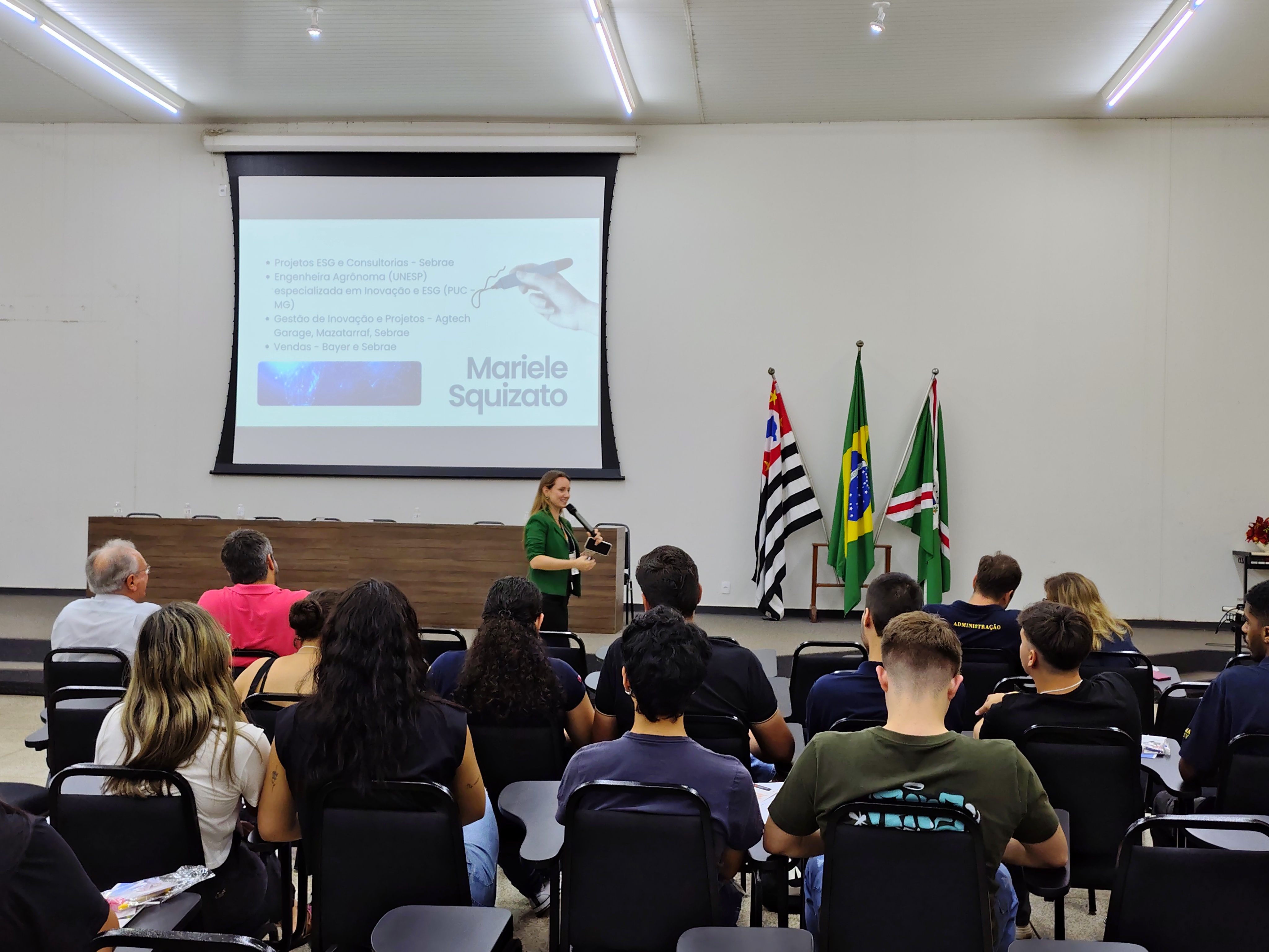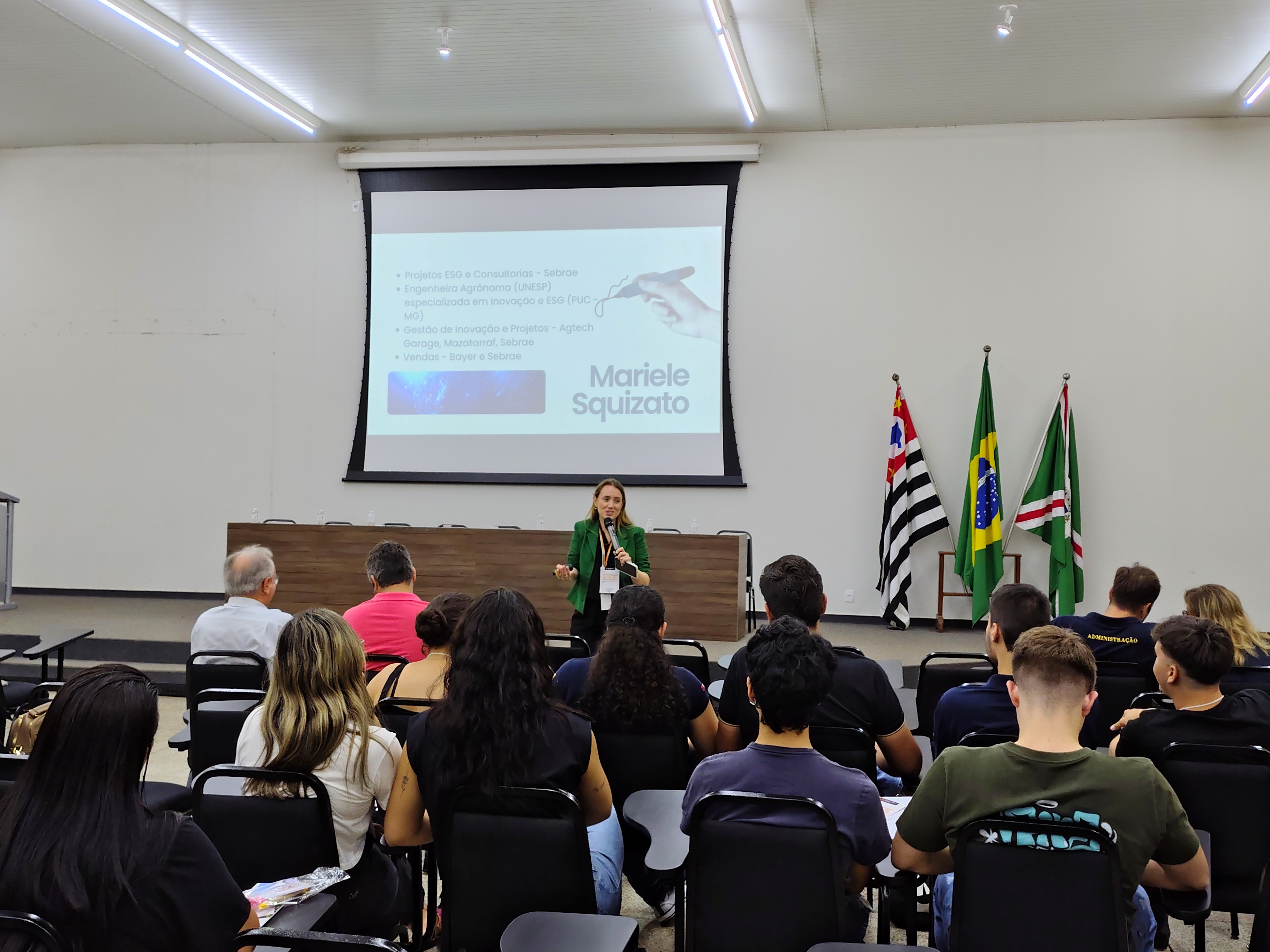 A 34ª Semana Científica de Administração da Faculdade Municipal de Bebedouro teve sua abertura oficial na segunda-feira (03/11), com a palestra “ESG – Quem cuida, lucra”, ministrada por Mariele Squizato, consultora do Sebrae-SP. Engenheira Agrônoma formada pela UNESP e com MBA em ESG e Inovação pela PUC Minas, Mariele possui experiência internacional pela University of Minnesota, com atuação em gestão de projetos, desenvolvimento regional e soluções inovadoras com impacto social. Sua trajetória profissional reflete o compromisso com o empreendedorismo local e sustentável, tema central de sua apresentação.