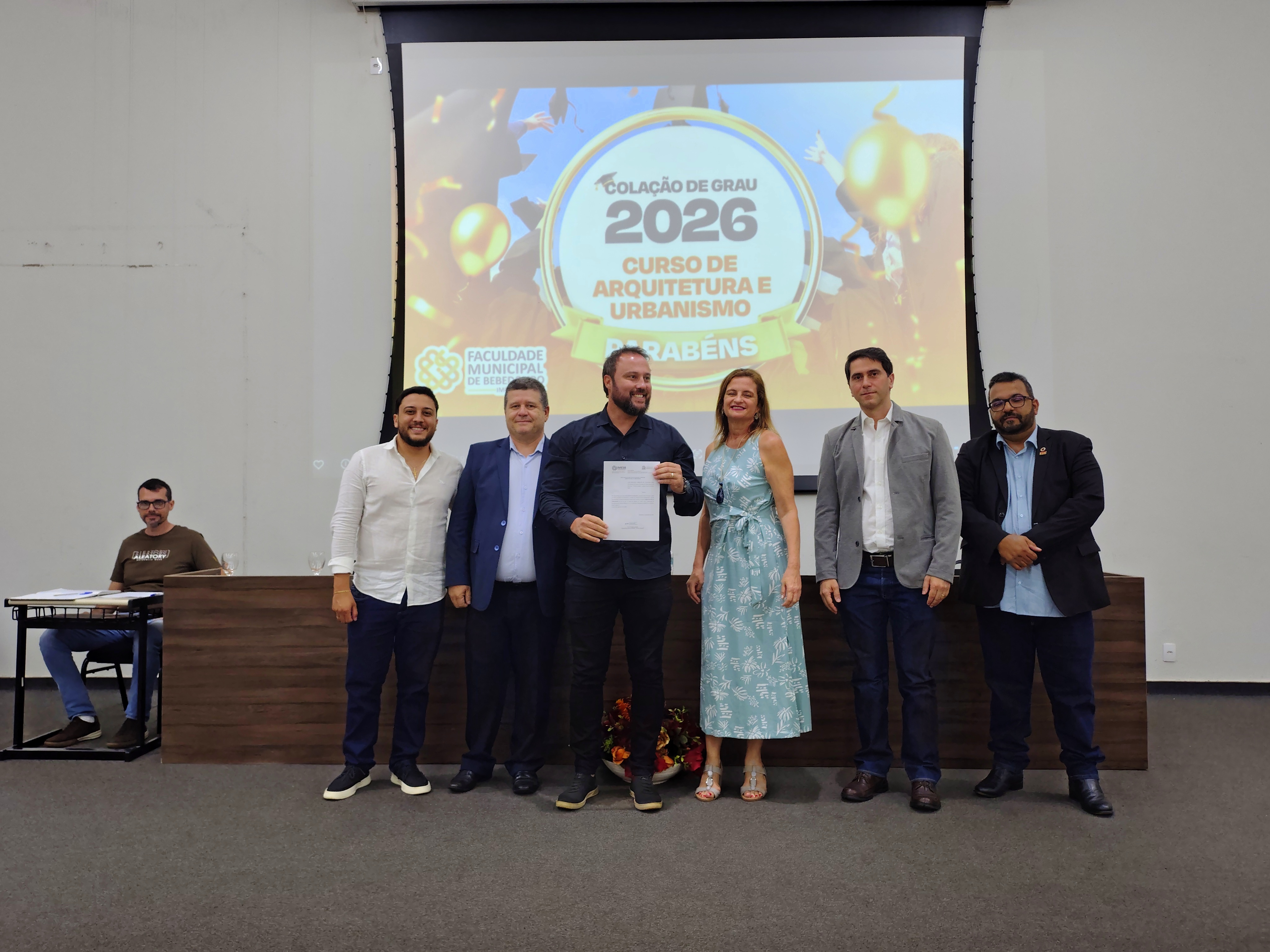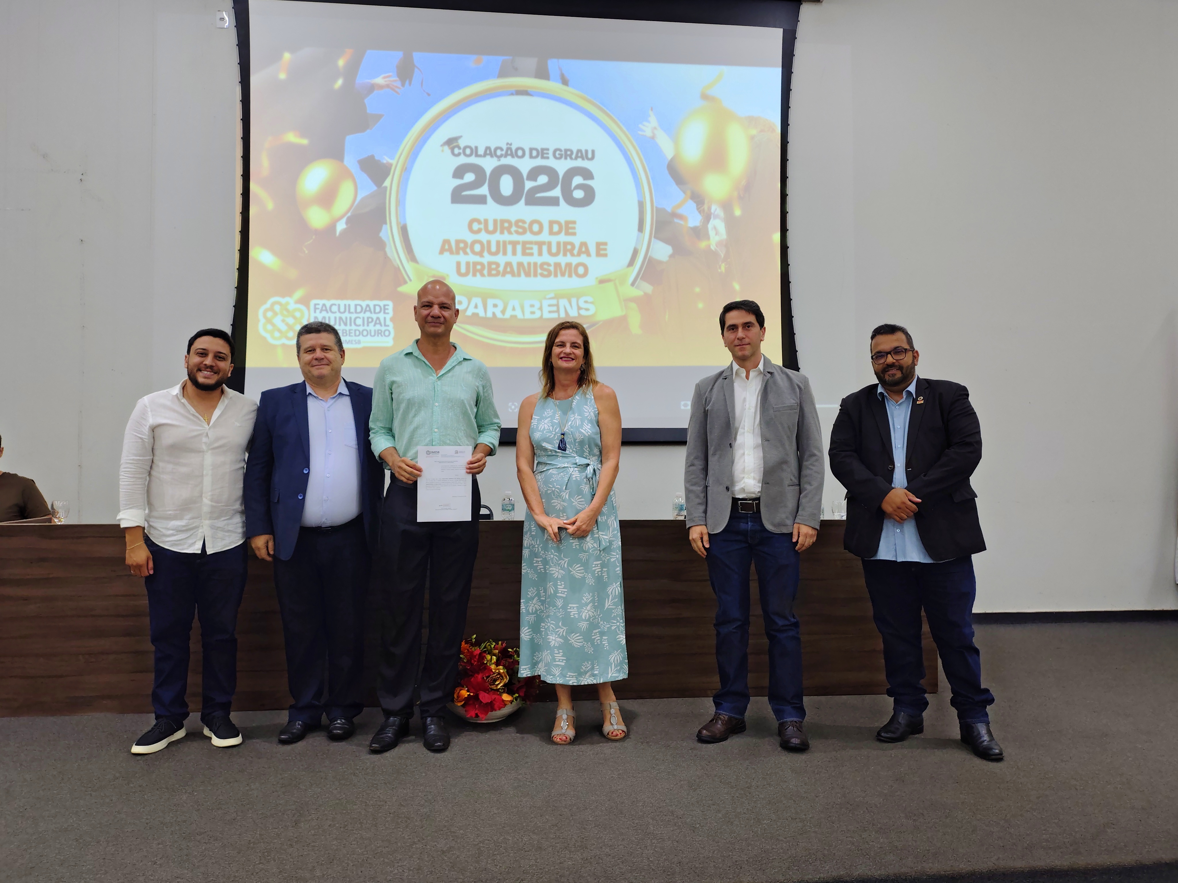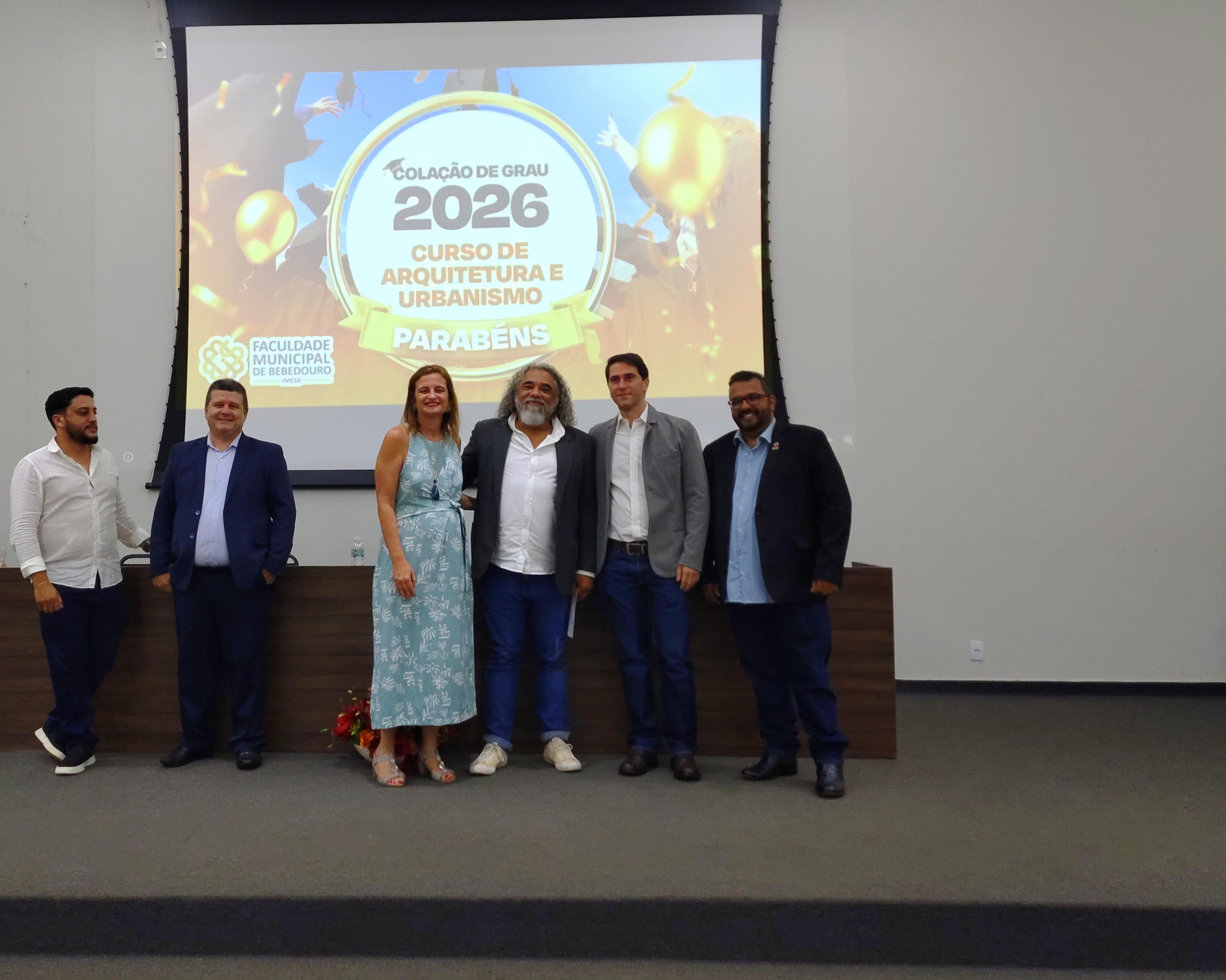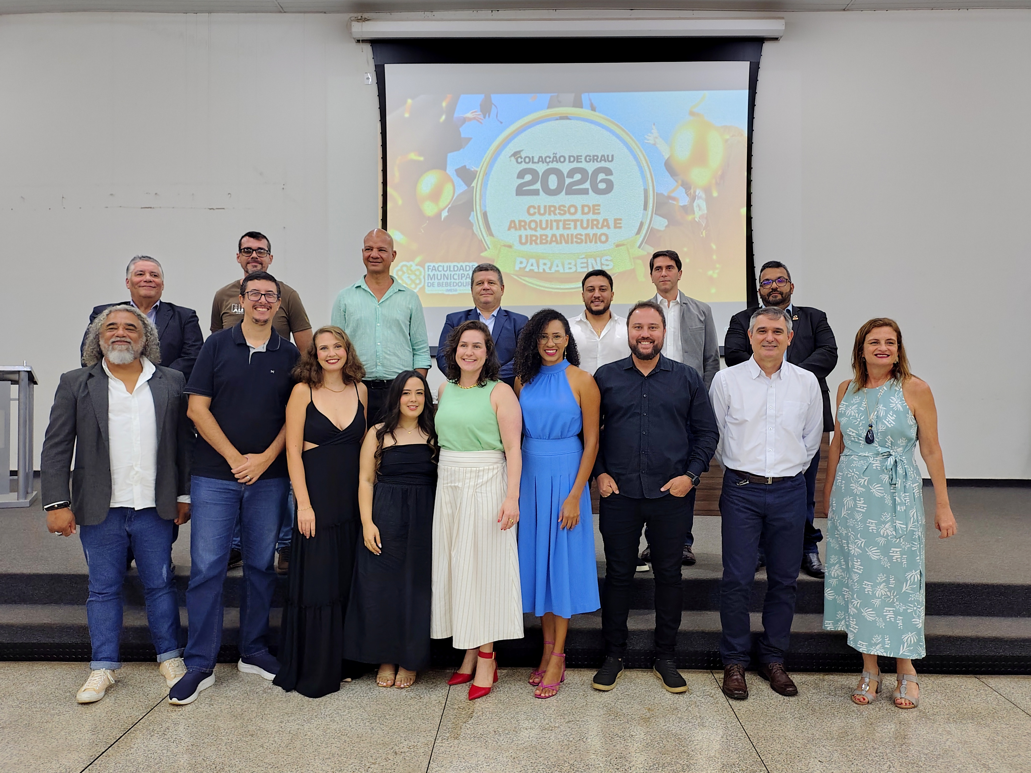 A Faculdade Municipal de Bebedouro realizou, nesta quinta-feira, 22 de janeiro de 2026, a cerimônia de colação de grau dos formandos do curso de Arquitetura e Urbanismo, da Turma Série Dourada, em sessão solene marcada por homenagens e momentos de celebração acadêmica.