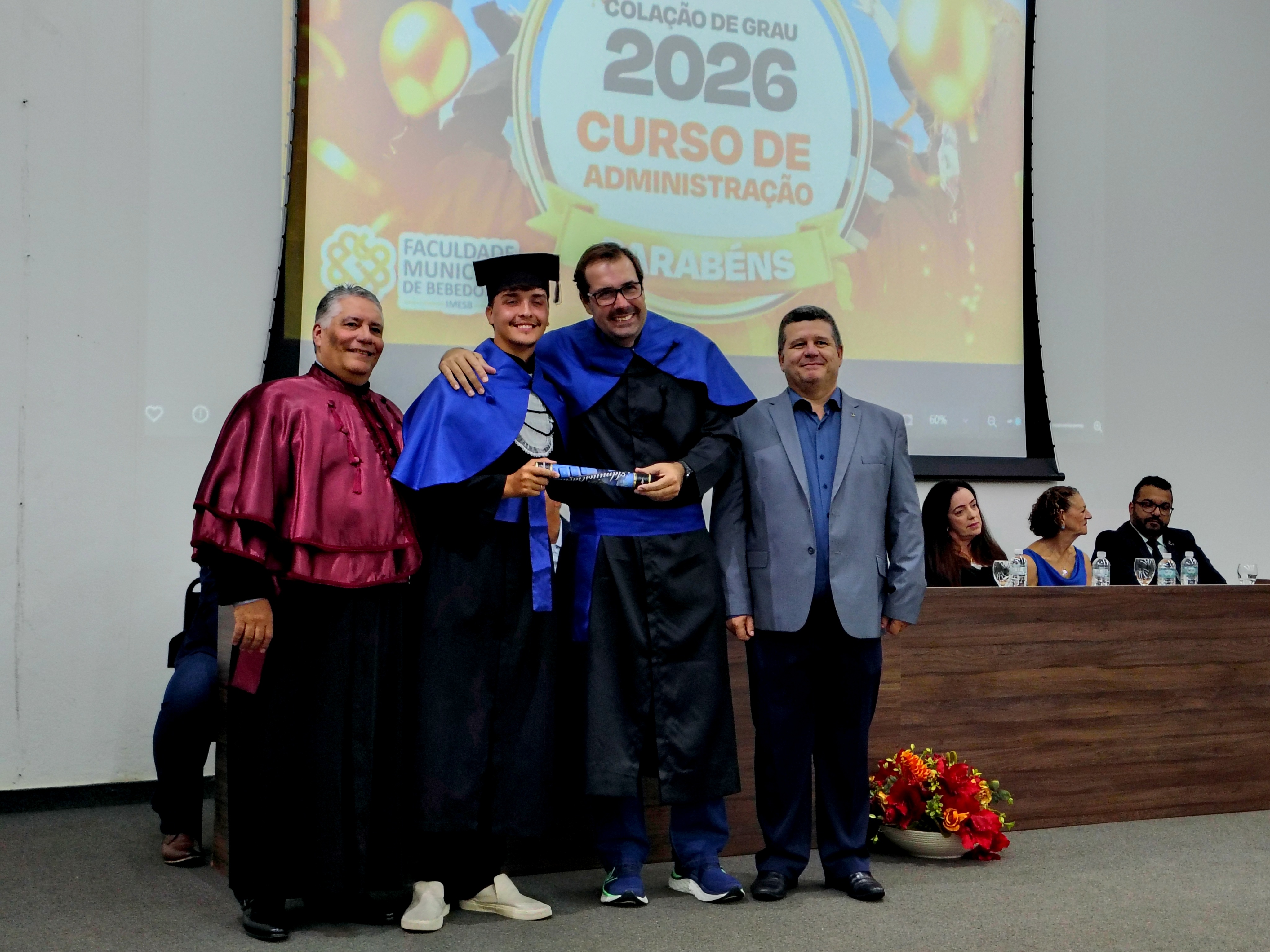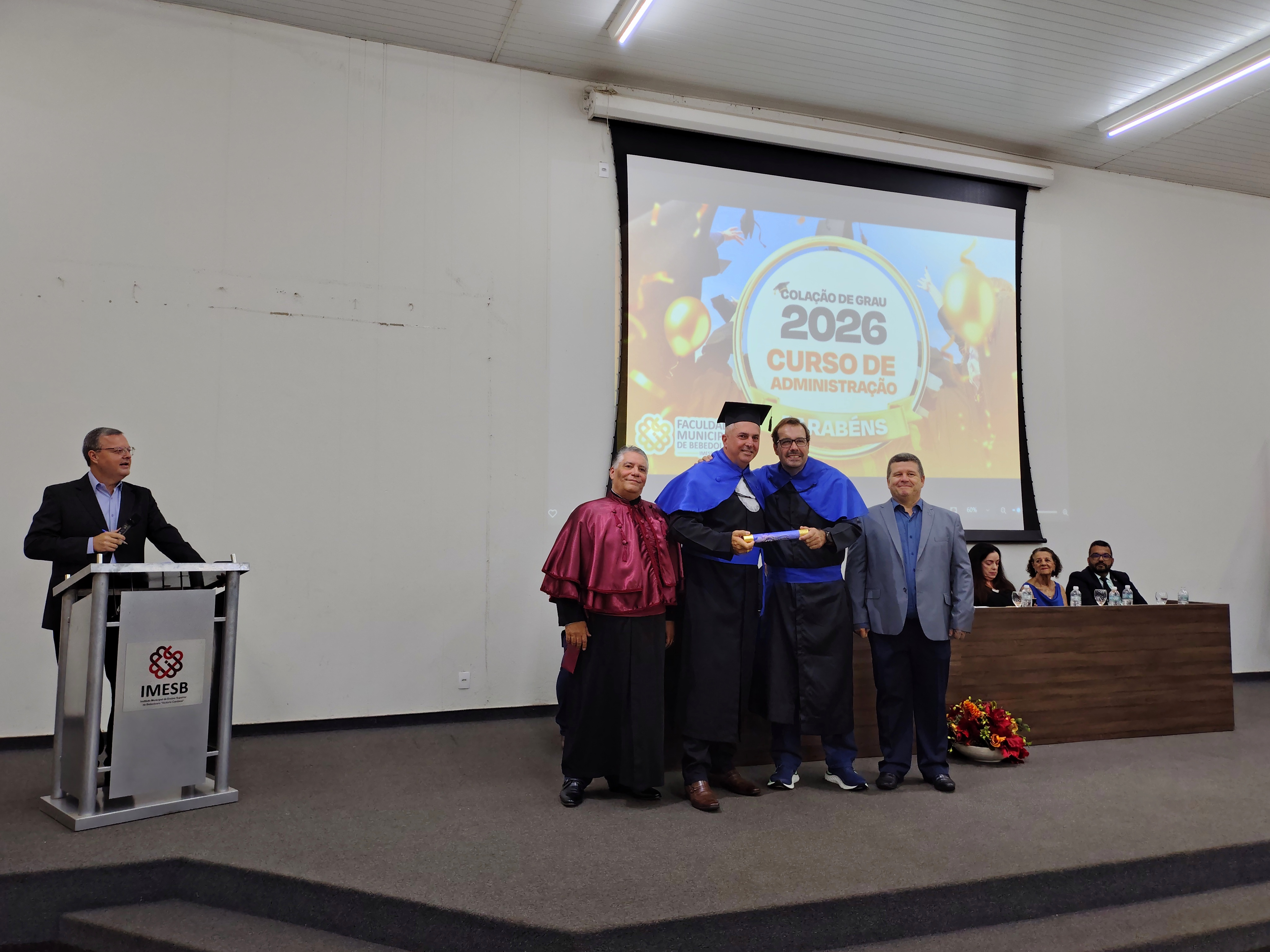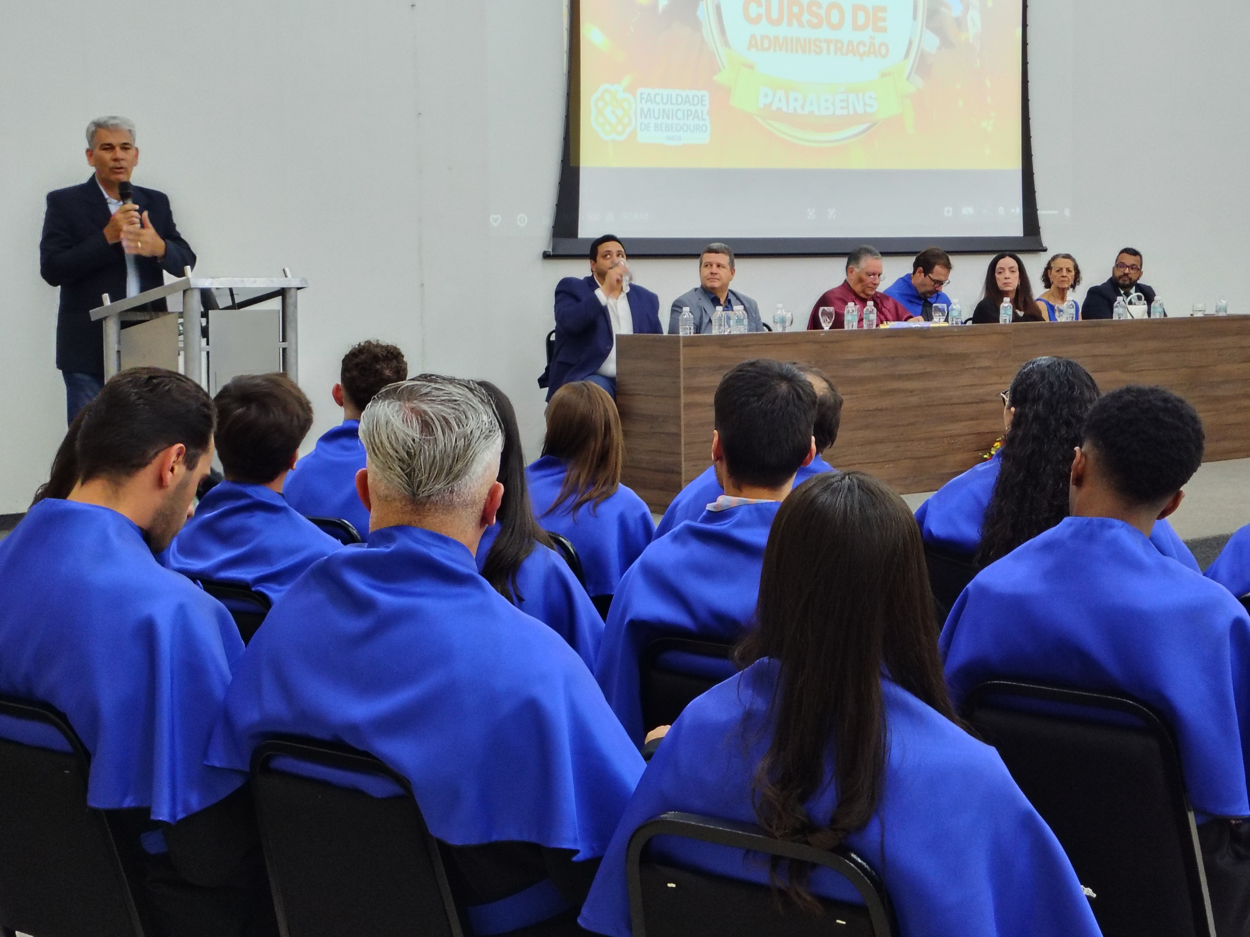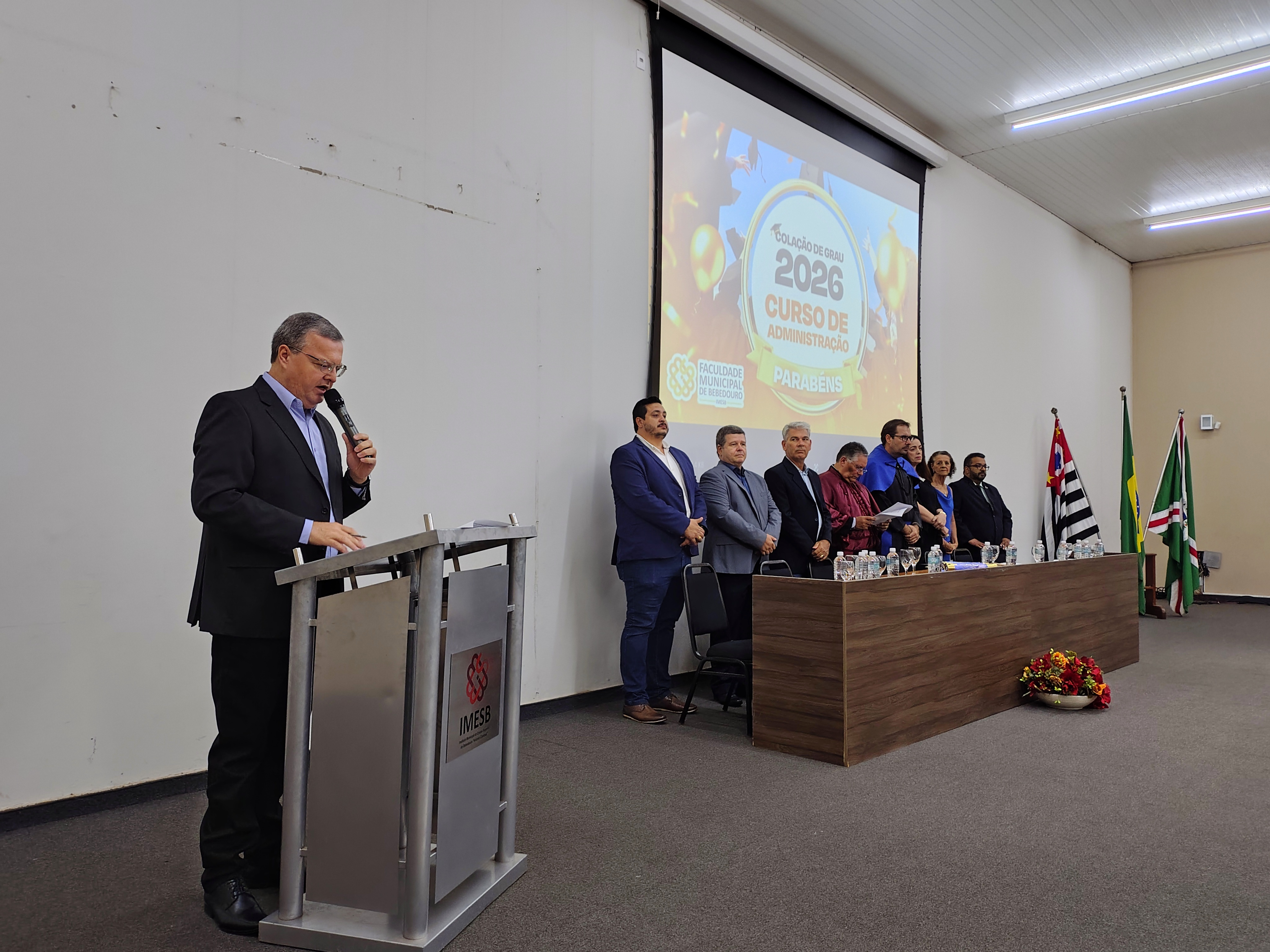 O evento contou com a presença do diretor da Faculdade Municipal e patrono da turma, Me. Luís Antônio Nogueira, do coordenador do Curso de Administração, Dr. Eduardo de Carvalho Machione, do professor Me. Marcelo Ramos, do vice-prefeito Paulo Aurélio Bianchini, do vereador Leo Munhoz, da representante do Conselho Regional de Administração (CRA), Patrícia Izabela Aparecida Somer Gomes, da funcionária homenageada Maria de Fátima Dias e do representante do Rotary Club Bebedouro Solidariedade, Carlos Augusto de Faria, além de familiares, amigos e convidados dos formandos.