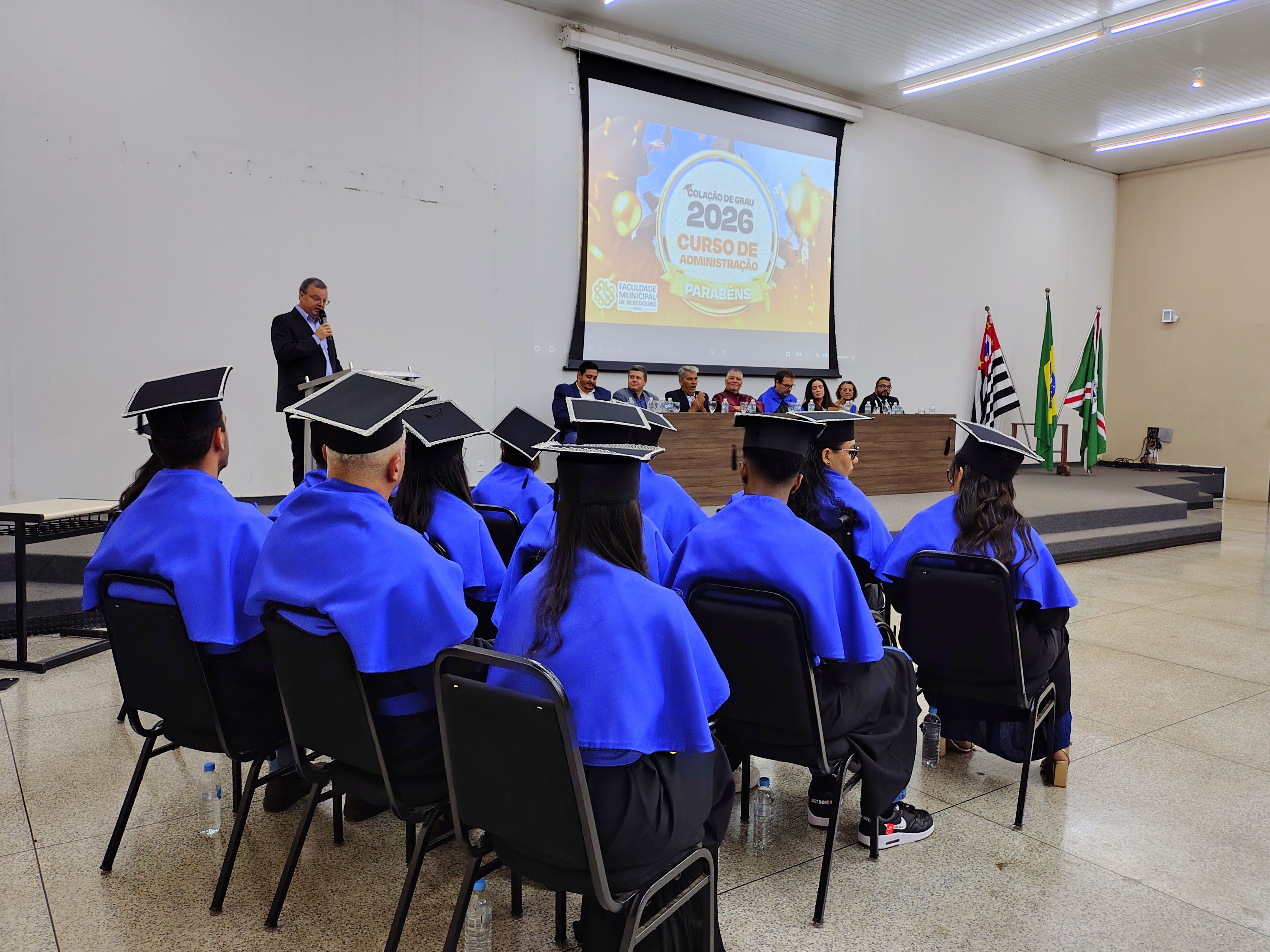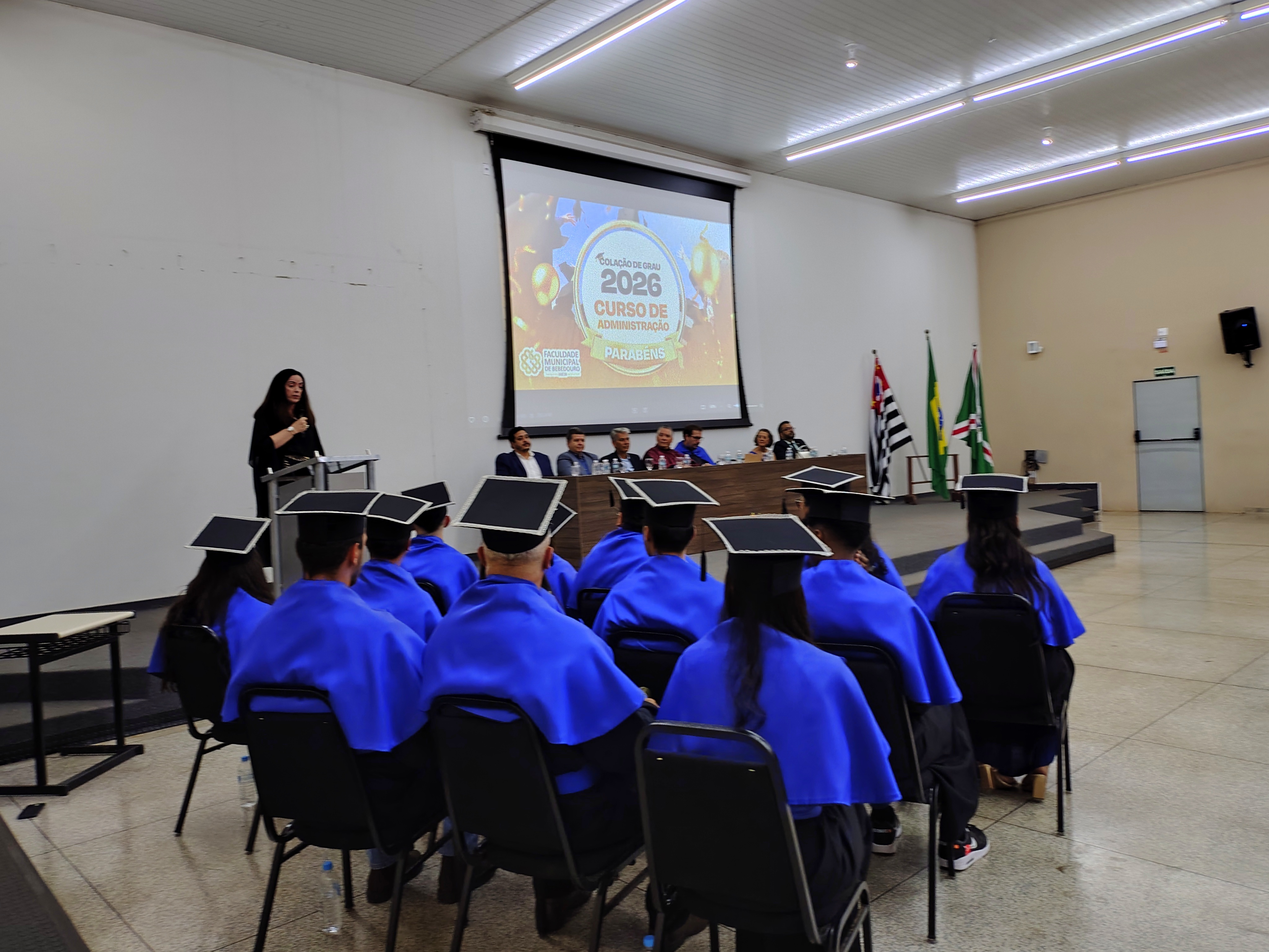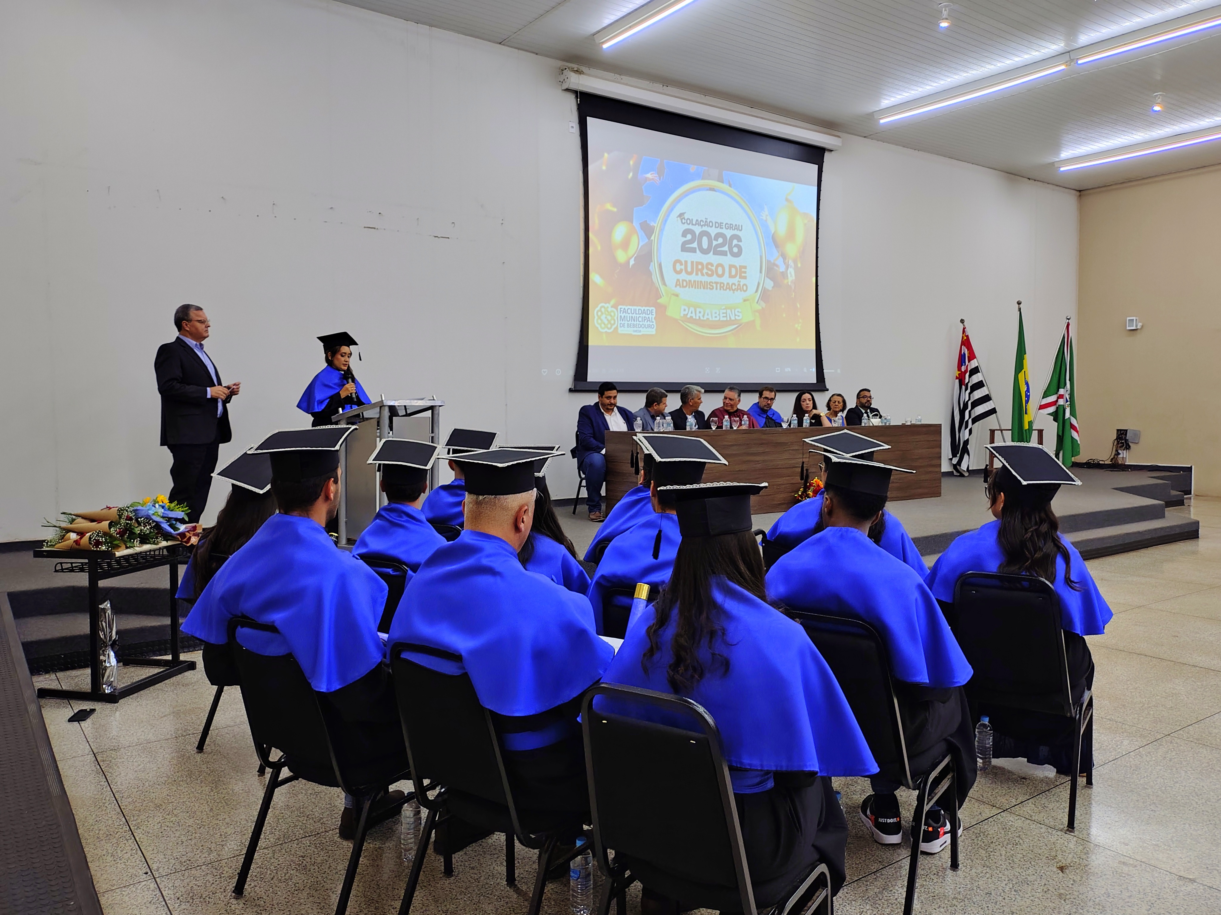 Na noite da última sexta-feira, 23 de janeiro, o Anfiteatro da Faculdade Municipal de Bebedouro foi realizada a Solenidade de Colação de Grau da 34ª Turma do Curso de Administração. Em homenagem à sua relevante contribuição acadêmica e dedicação à formação dos novos profissionais, a turma recebeu o nome da Profa. Dra. Renata Cipolli D’Arbo.