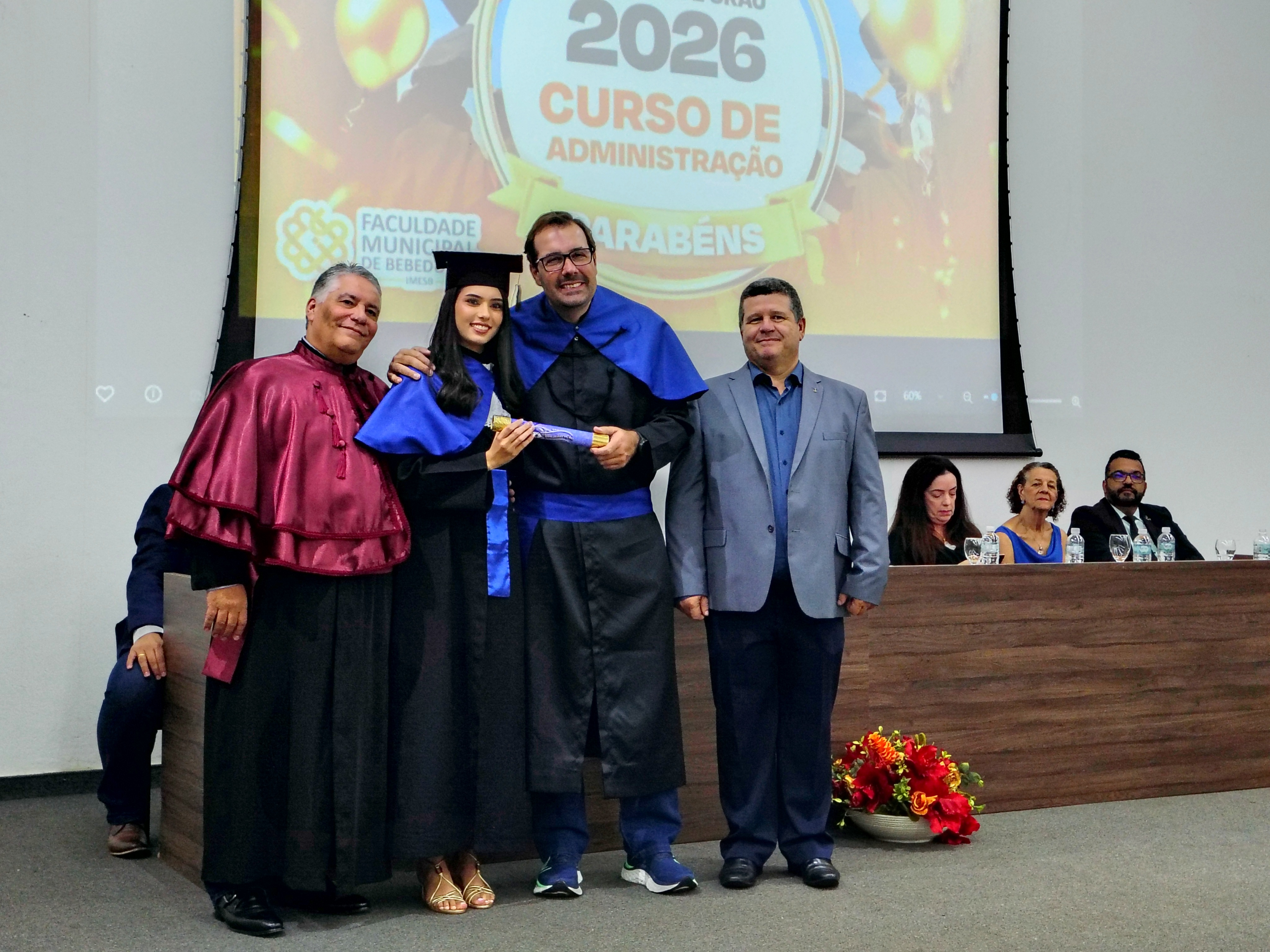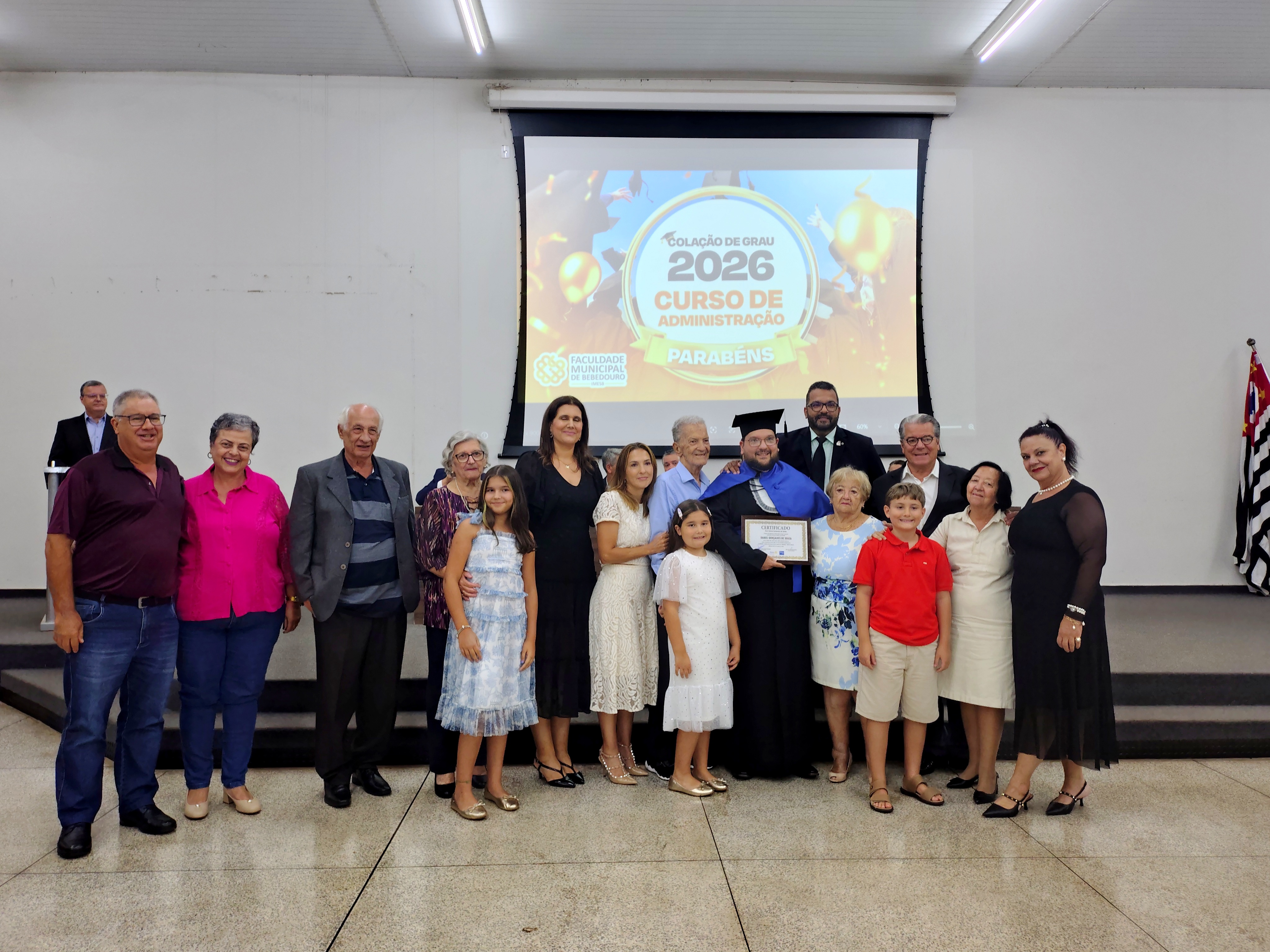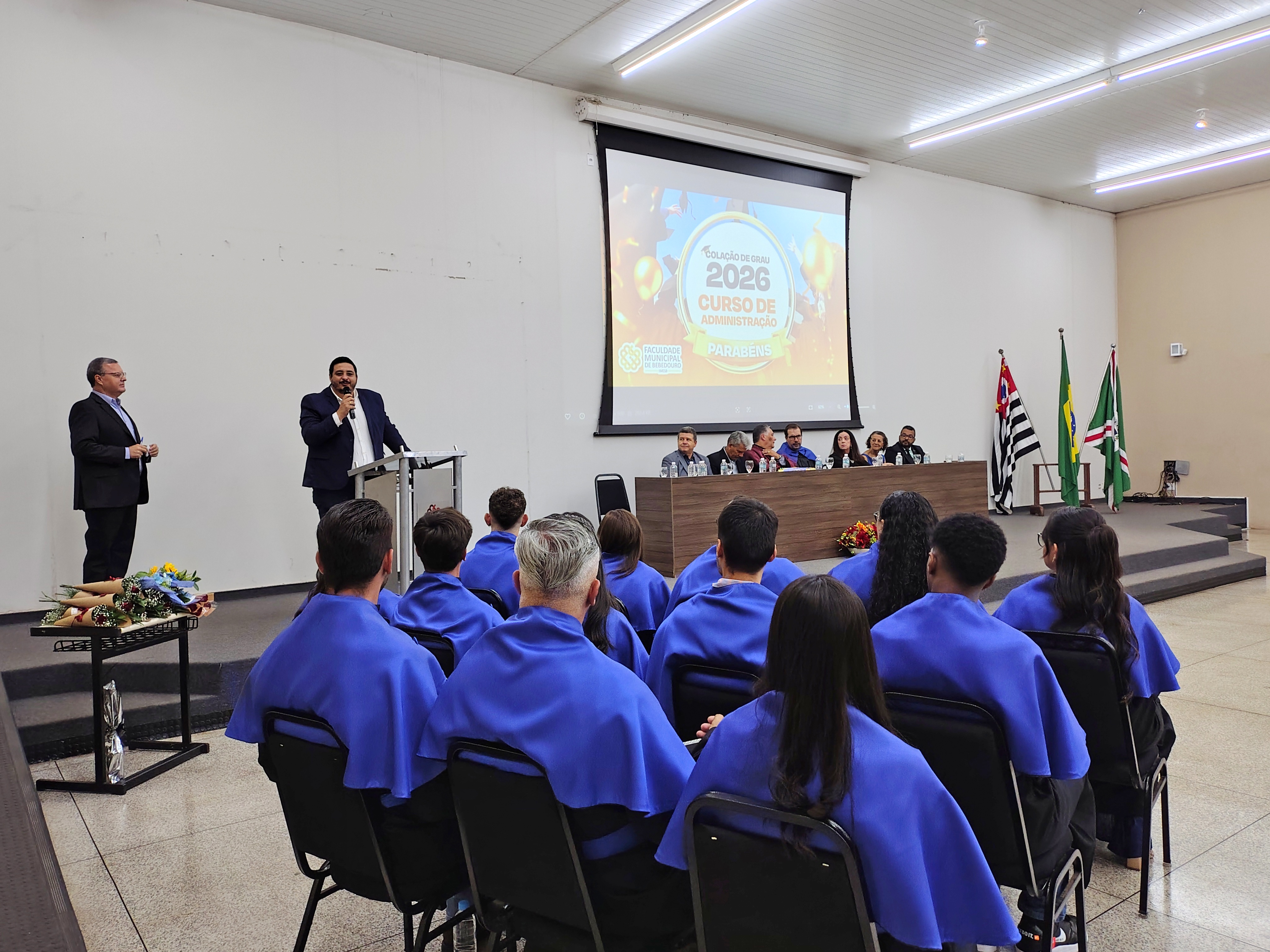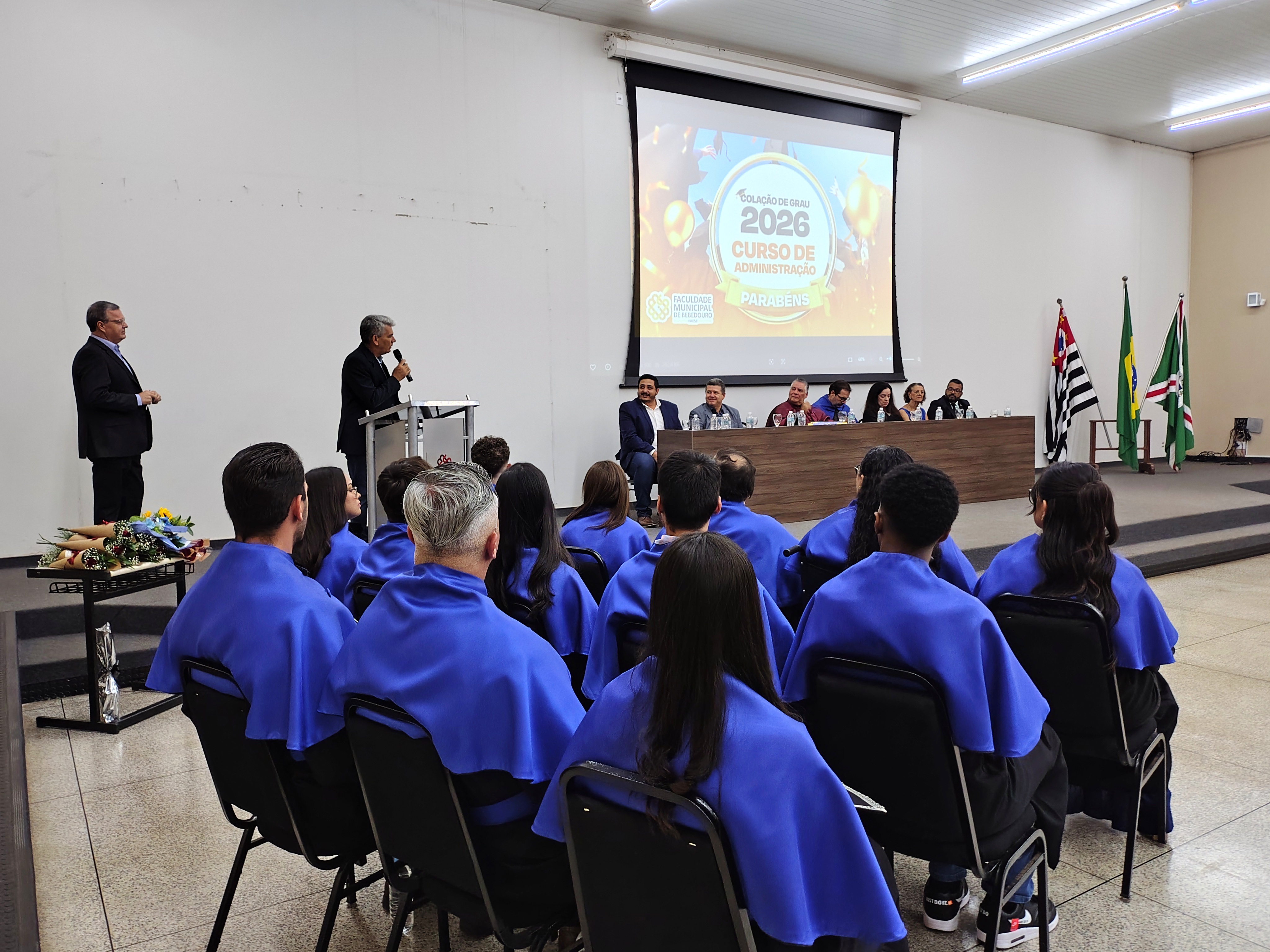 Na noite da última sexta-feira, 23 de janeiro, o Anfiteatro da Faculdade Municipal de Bebedouro foi realizada a Solenidade de Colação de Grau da 34ª Turma do Curso de Administração. Em homenagem à sua relevante contribuição acadêmica e dedicação à formação dos novos profissionais, a turma recebeu o nome da Profa. Dra. Renata Cipolli D’Arbo.