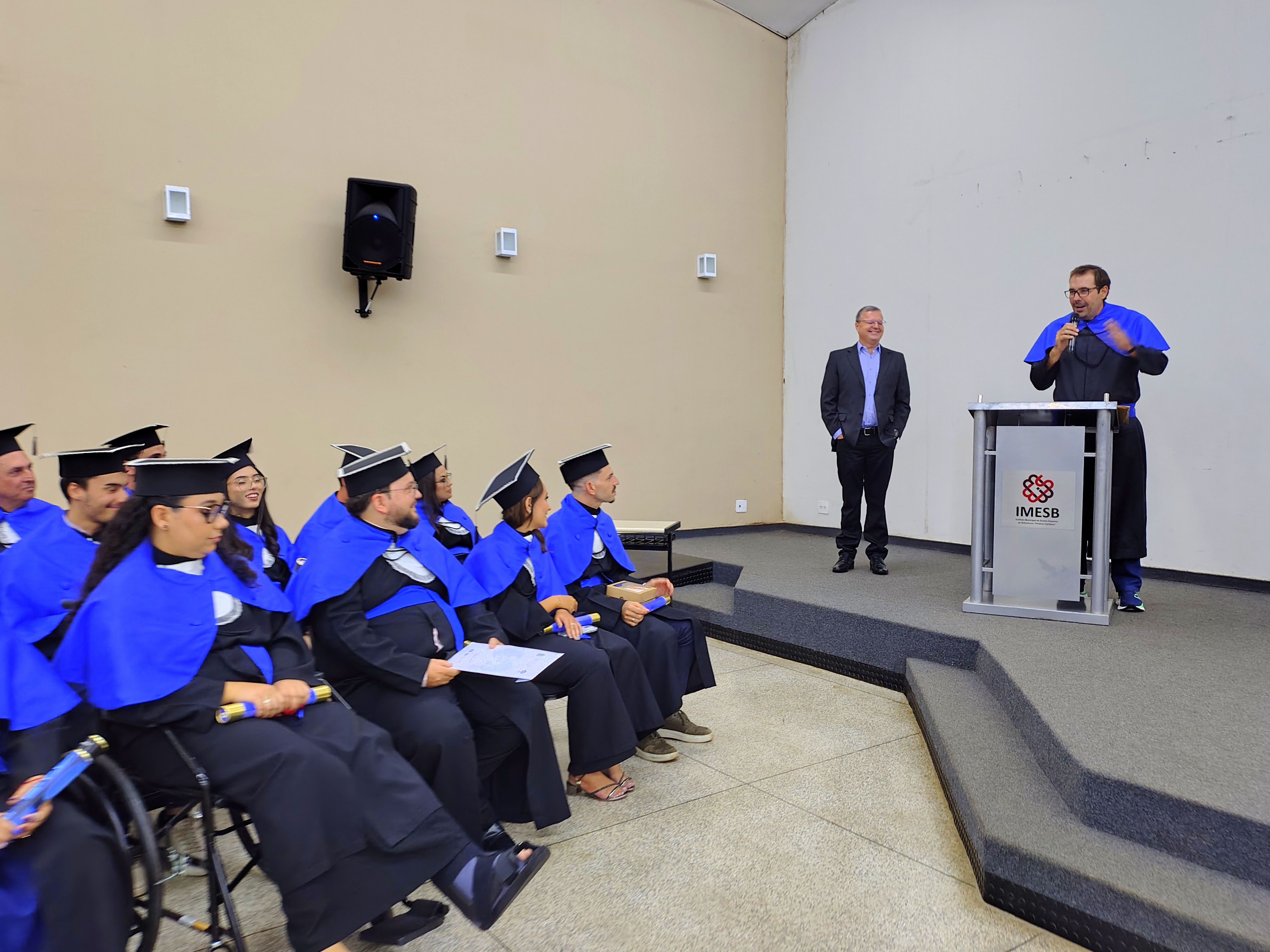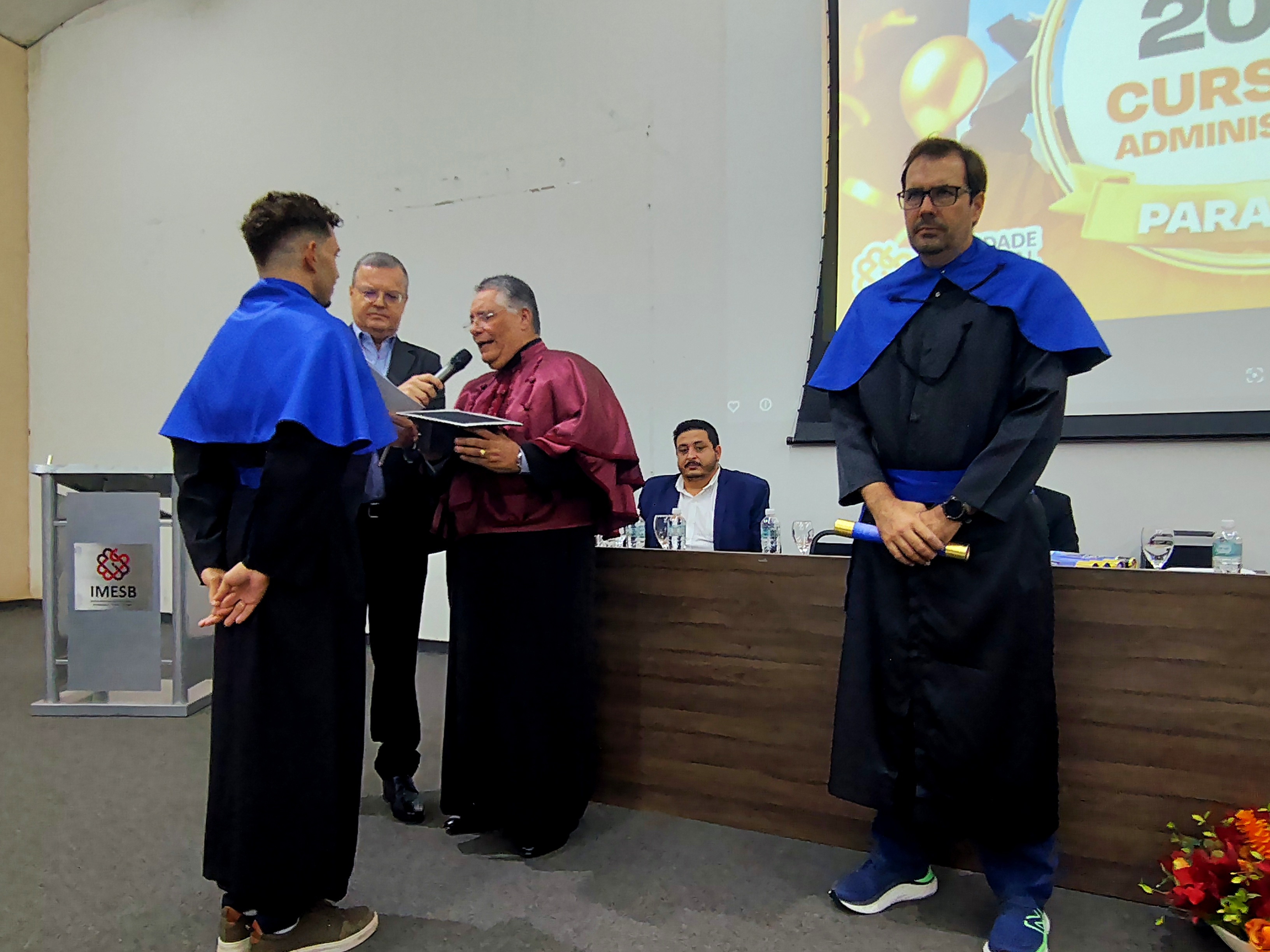 Como momento especial da cerimônia, o bacharel Dr. Daniel Gonçalves de Souza recebeu a Homenagem Honra ao Mérito, concedida pela Faculdade Municipal, em reconhecimento ao seu desempenho acadêmico ao longo do curso, bem como à sua postura ética, ao respeito e à convivência harmoniosa com colegas, docentes e funcionários.
