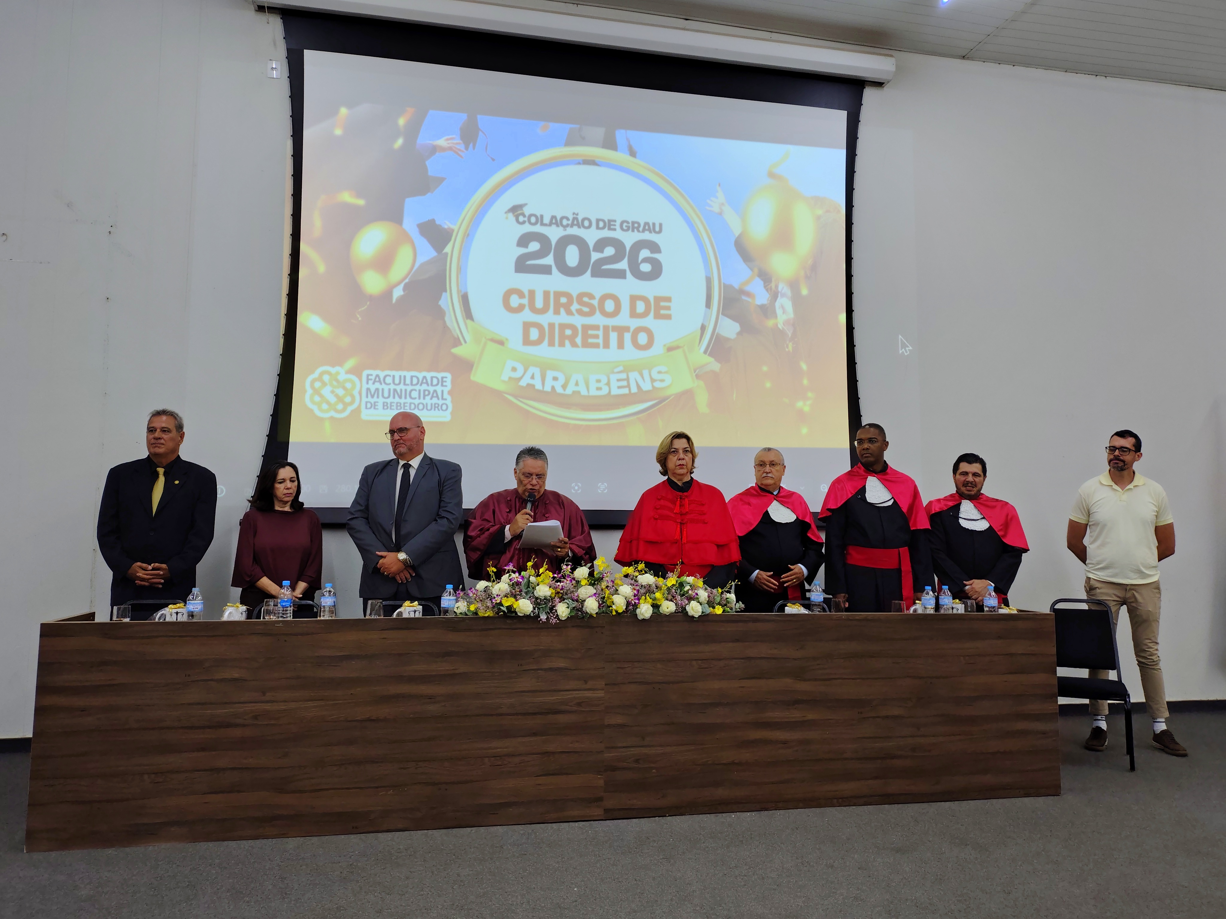 A Faculdade Municipal de Bebedouro, realizou, nesta quinta-feira (29/01), a solenidade de Colação de Grau da turma “Prof. Dr. Josué Justino do Rio”, marcando oficialmente a conclusão da graduação dos formandos do Curso de Direito.