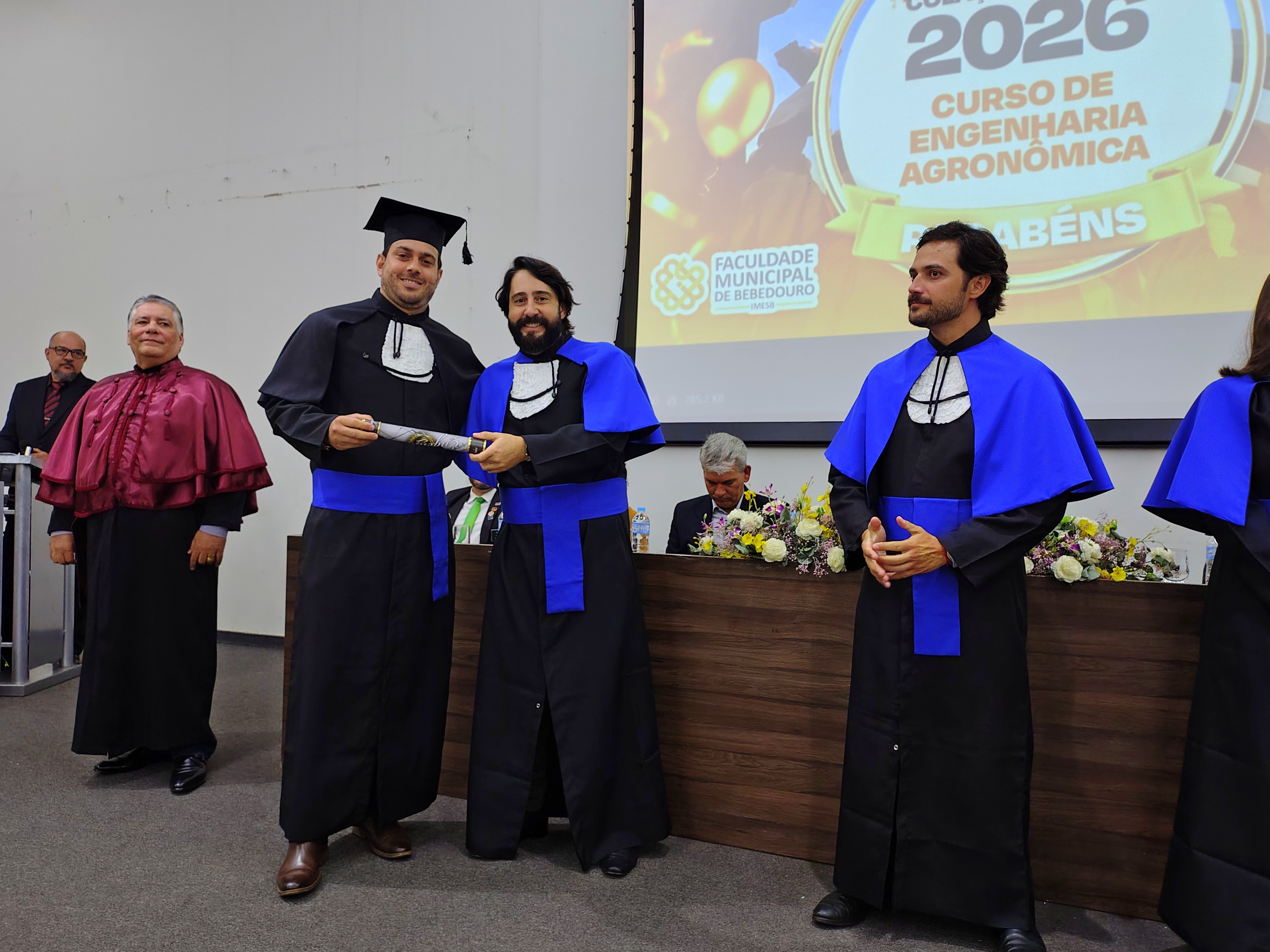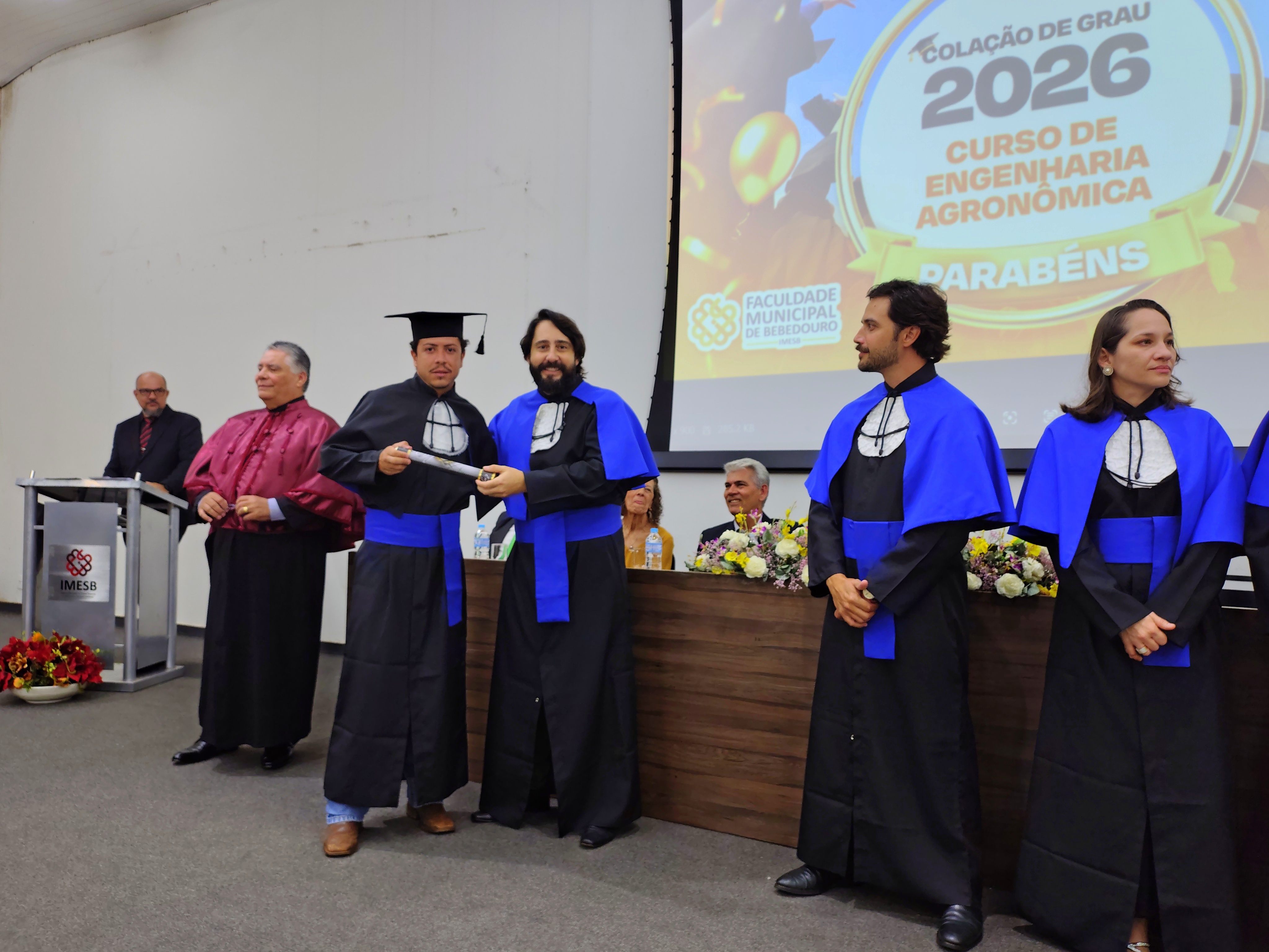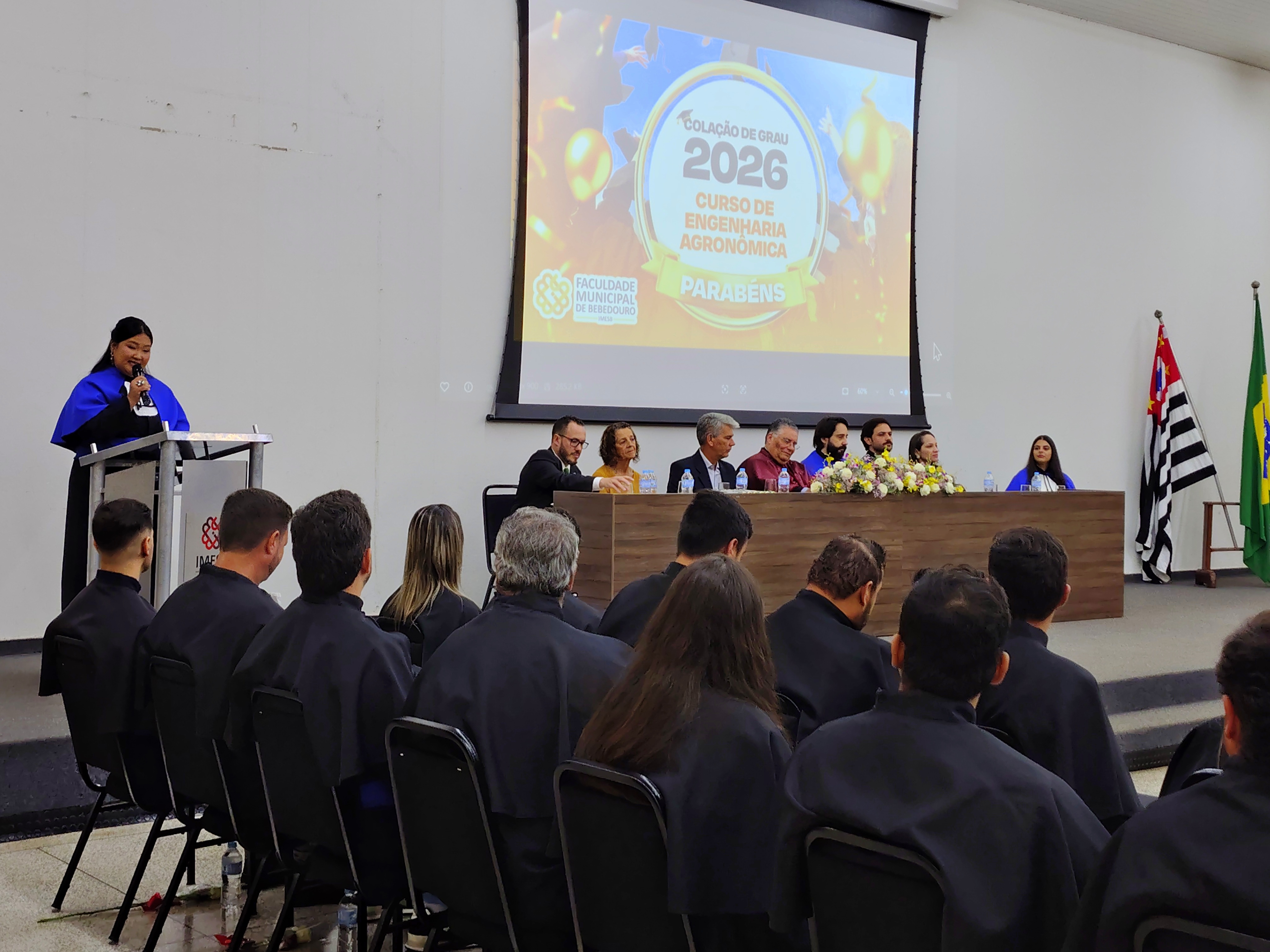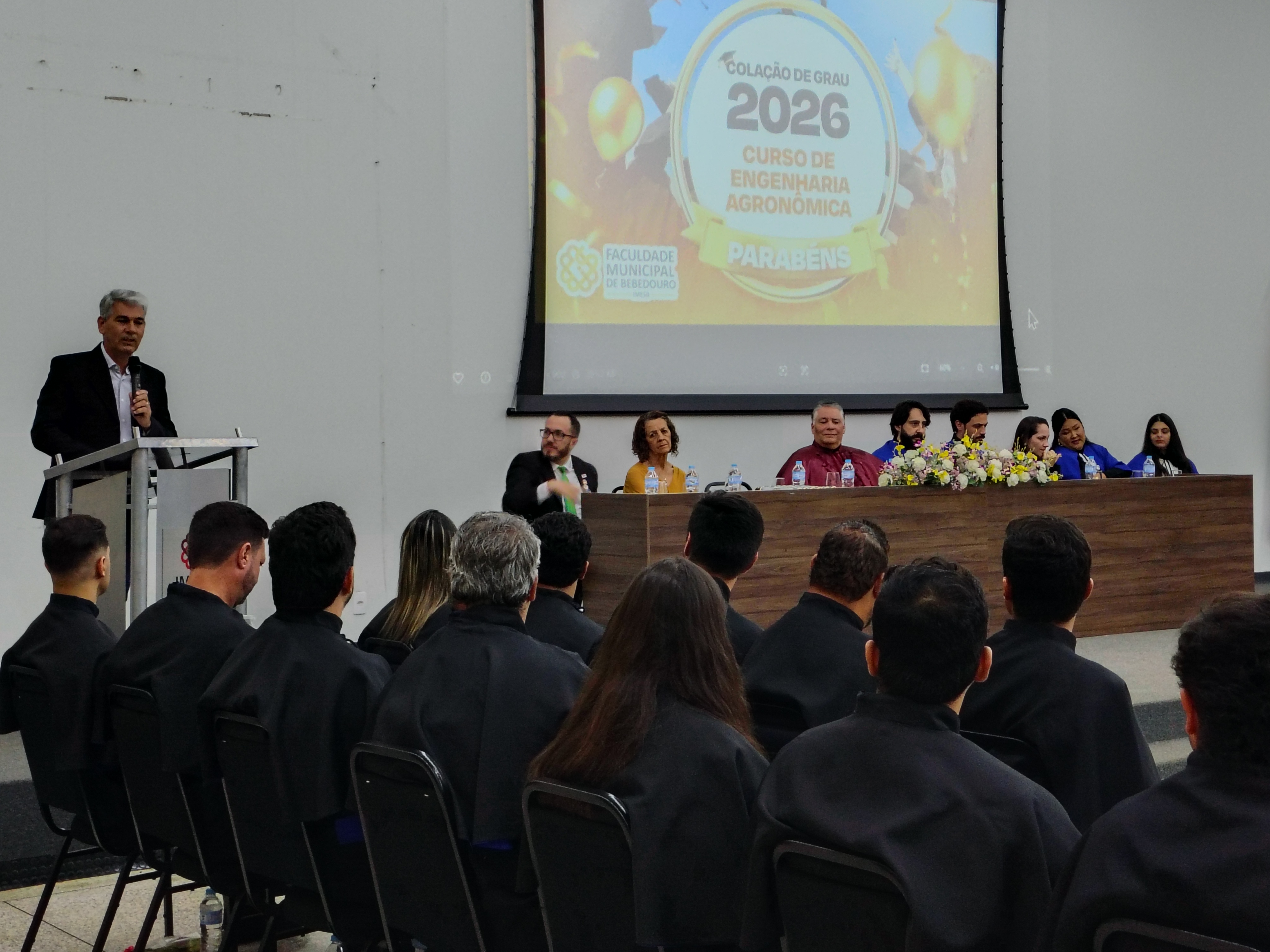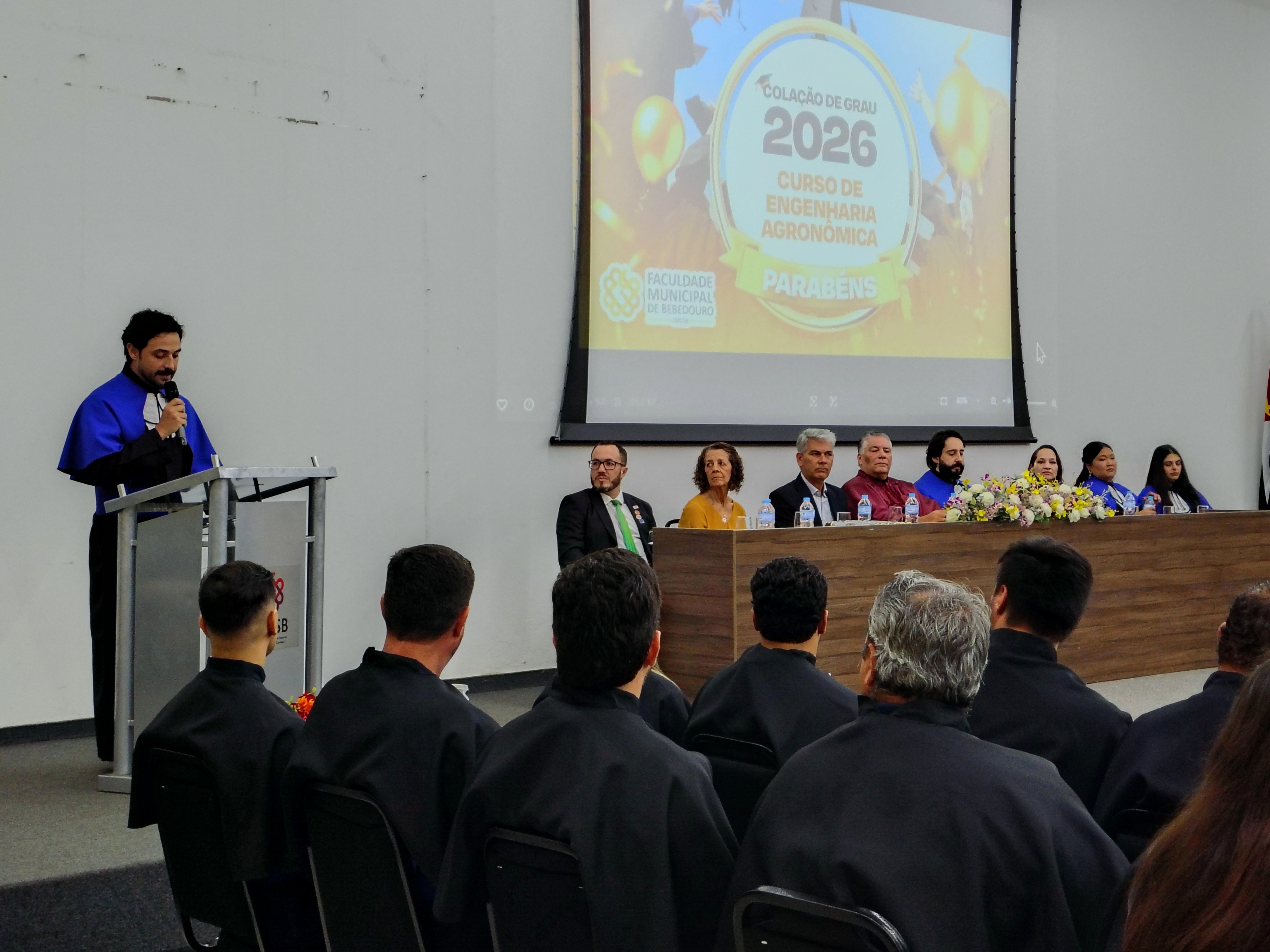 A Faculdade Municipal de Bebedouro, realizou na última sexta-feira (30/01), a cerimônia de colação de grau da 8ª Turma do Curso de Engenharia Agronômica, reunindo formandos, familiares, autoridades acadêmicas e convidados em uma noite marcada por reconhecimento e celebração.