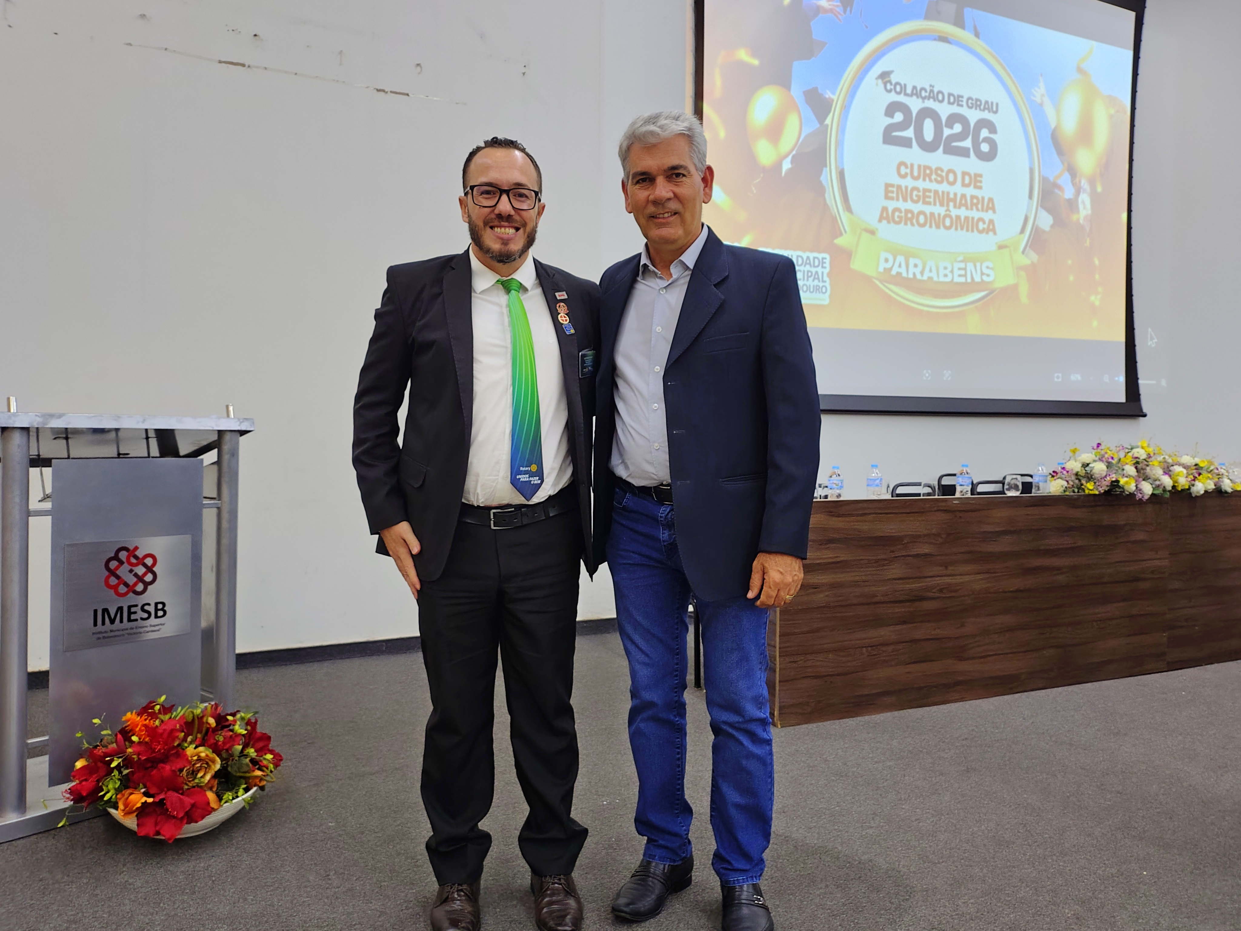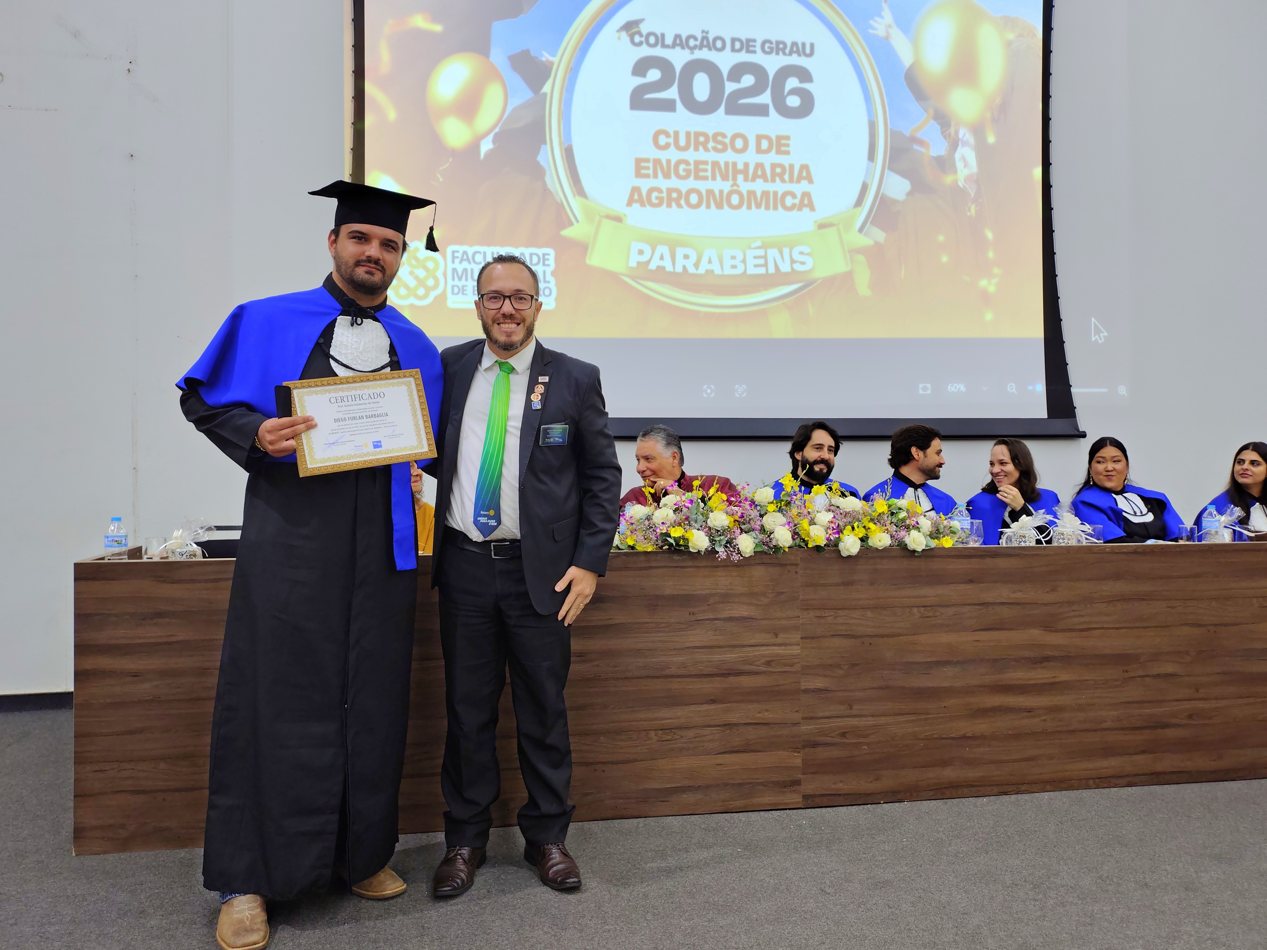 O título de Aluno Destaque foi concedido a Caio Bernardo, que também atuou como juramentista da turma. O aluno Diego Furlan Barbaglia, orador da solenidade, recebeu a premiação do Rotary, com média 8,50, entregue pelo presidente da entidade, Alex Freire Monteiro Pereira.